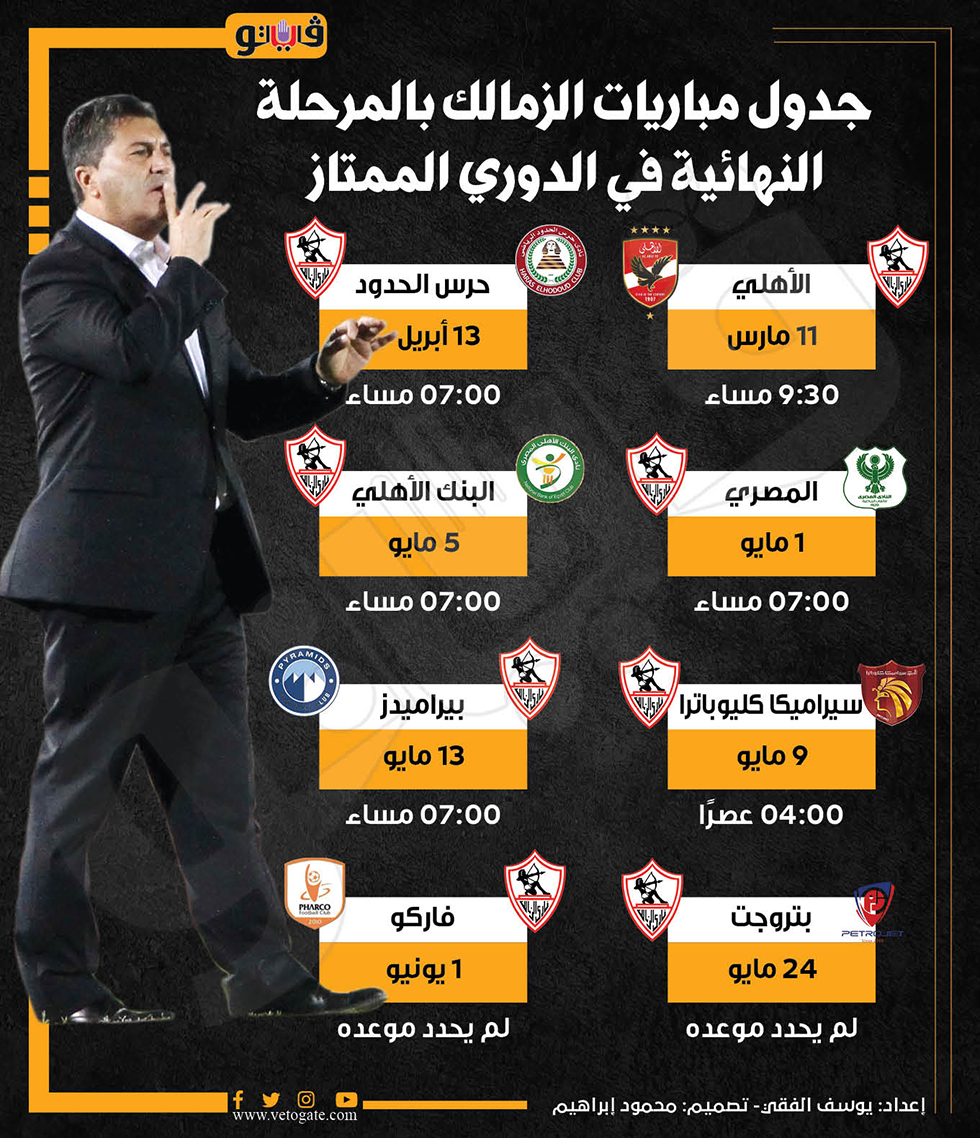 جدول مباريات الزمالك بالمرحلة النهائية في الدوري الممتاز (إنفوجراف)