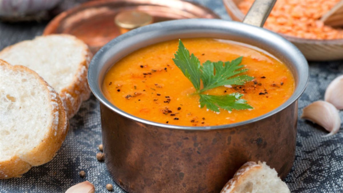 شوربة العدس: غنية بالبروتين والألياف، وتساعد على ترطيب الجسم وتعزيز الشعور بالشبع.