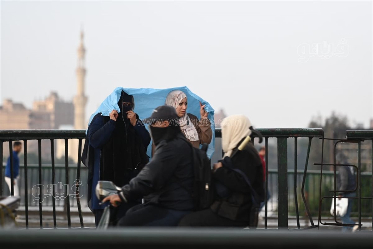 ورصدت عدسة فيتو، لجوء المصريين إلى استخدام الشمسيات وأكياس البلاستيك للاحتماء من الأمطار والبرد في الشوارع، في محاولة لتجنب البلل والحفاظ على دفئهم.