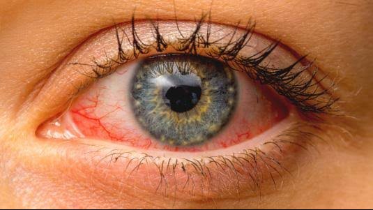 الجلوكوما، وهي مجموعة من الحالات التي تلحق الضرر بالعصب البصري. وغالبًا ما تبدأ بالتهاب يتسبب في تراكم الضغط في العين، وتشمل الأعراض: