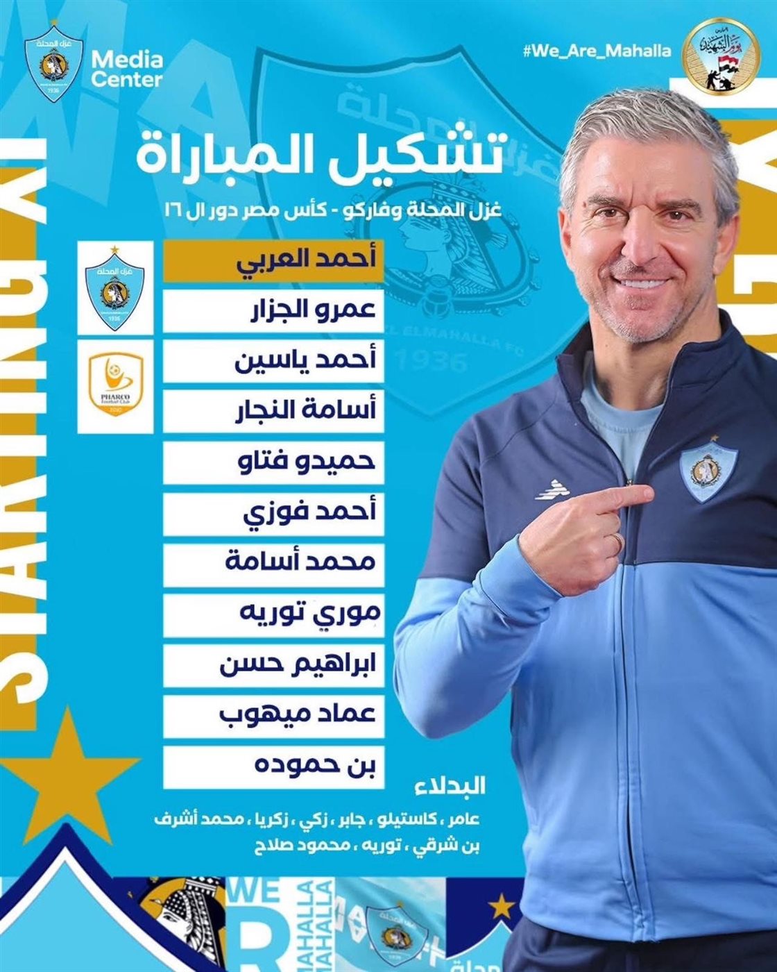 وأعلن بابا فاسيليو مدرب الفريق الأول لكرة القدم بنادي غزل المحلة تشكيل فريقه لمواجهة نظيره فريق فاركو مساء اليوم السبت على ستاد المحلة في إطار مباريات دور الـ16 من منافسات بطولة كأس مصر.