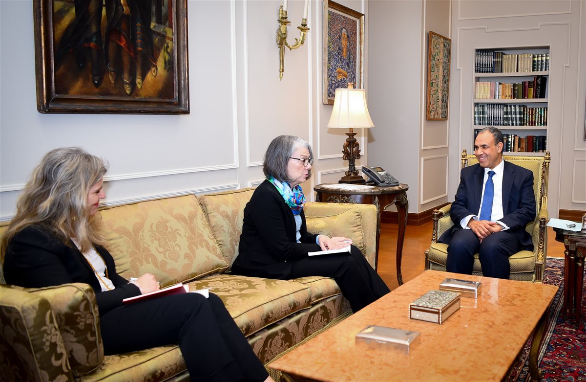 استقبل بدر عبد العاطى وزير الخارجية والهجرة " كيت فوربس" رئيسة الاتحاد الدولي لجمعيات الهلال والصليب الأحمر وذلك البوم.