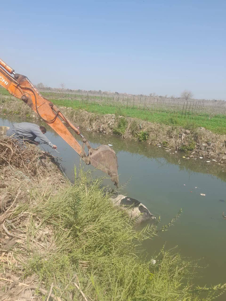 رفع حيوانات نافقة من ترعة السنطة حفاظًا على البيئة والصحة العامة (صور)