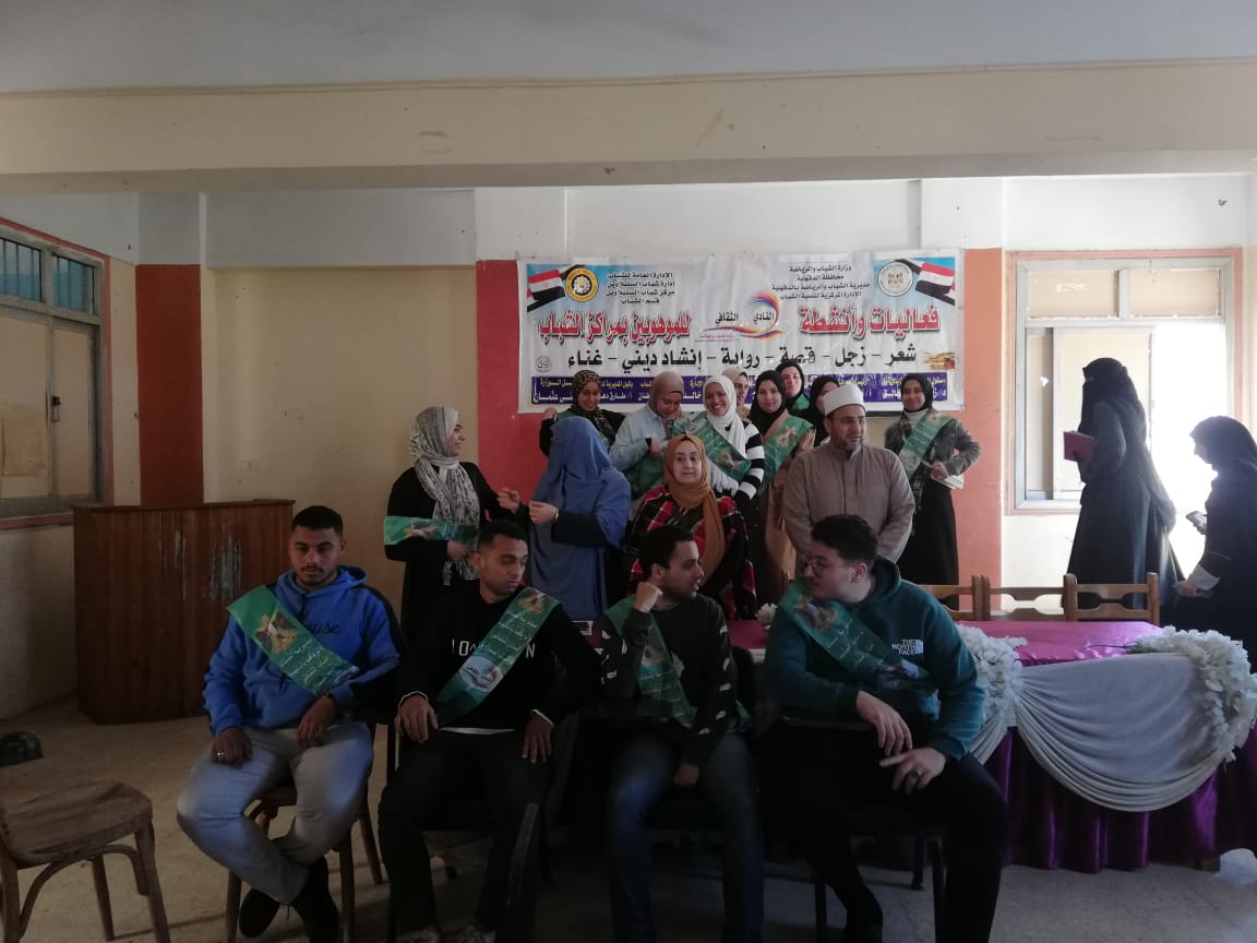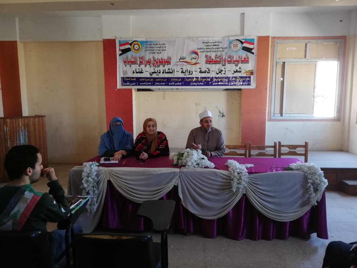 جاء ذلك بحضور بسمة ريحان منسق النادي الثقافي بالإدارة العامة للشباب بالمديرية، والدكتورة زينب عبد الخالق مشرف النادي الثقافي بإدارة السنبلاوين، وأم محمد عوض رئيس قسم الشباب بالإدارة، وفضيلة الشيخ أحمد محمود حليمه أمام وخطيب ومدرس بمديرية أوقاف الدقهلية، وبحضور "25" من الشباب اعضاء النادي الثقافي بمركز الشباب.