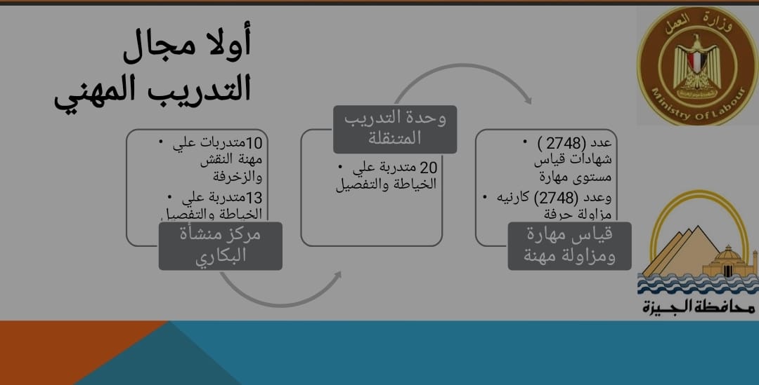 من جانبه، أوضح محمد رمضان، مدير مديرية العمل بالجيزة، أنه تم تنظيم 4 ندوات حول السلامة والصحة المهنية ومخاطر الحريق، استفاد منها 125 عاملًا، كما تم استخراج 2,748 شهادة قياس مستوى مهارة وكارنيه مزاولة مهنة لدعم العمالة الفنية والمهنية.