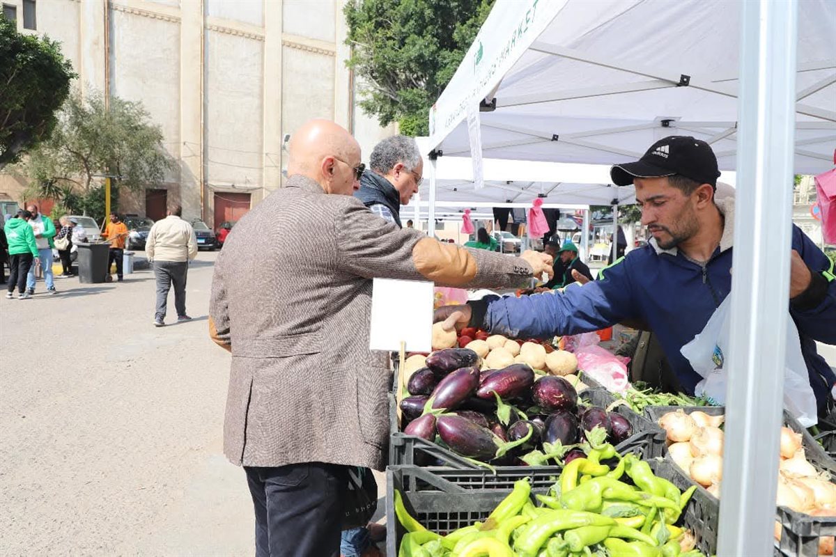 إقبال المواطنين على سوق المزارعين لليوم الواحد بمنطقة محطة الرمل بالإسكندرية