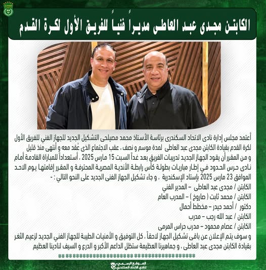 رسميا، مجدي عبد العاطي مديرا فنيا للاتحاد السكندري