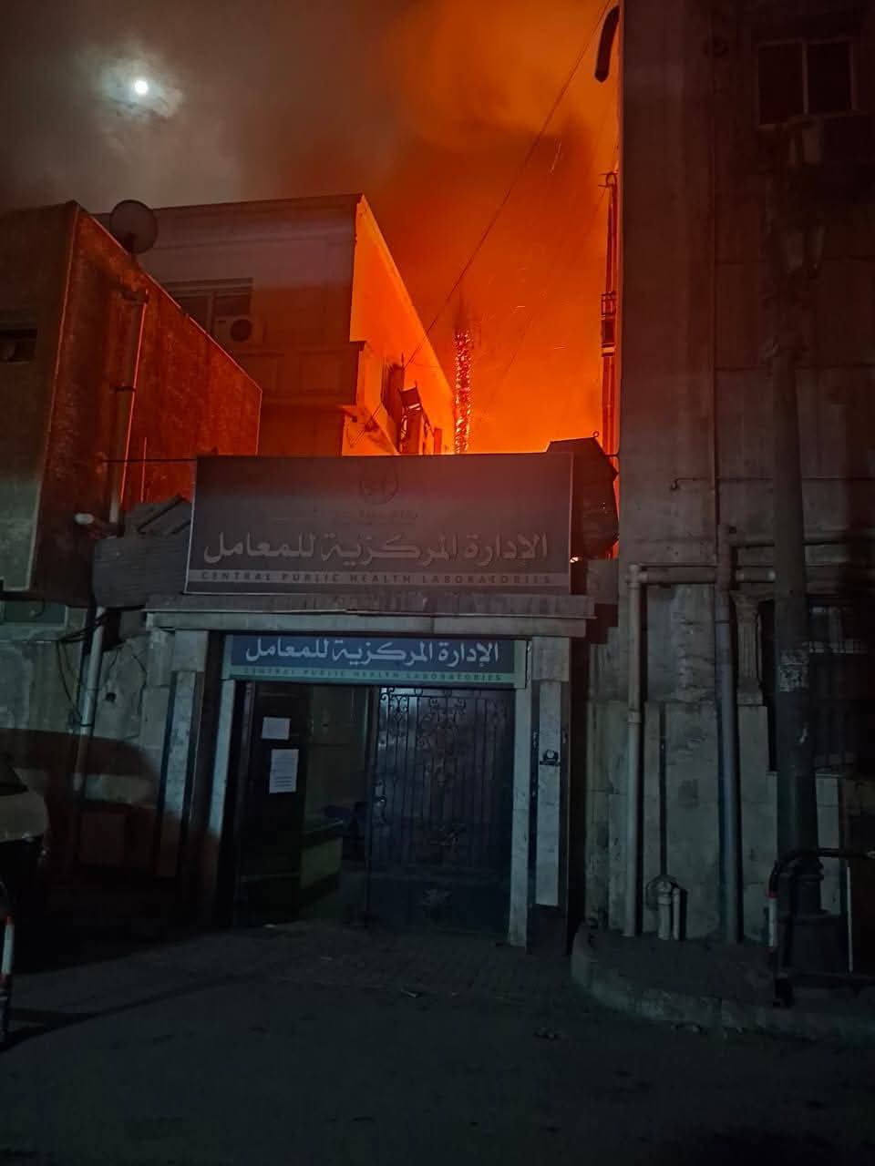 امتداد حريق معامل وزارة الصحة إلى مبنى التراخيص الطبية بشارع الشيخ ريحان (صور)
