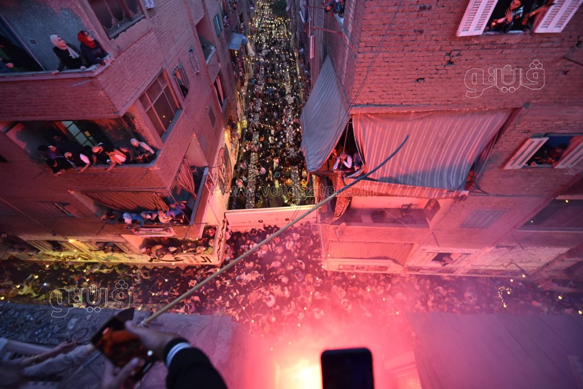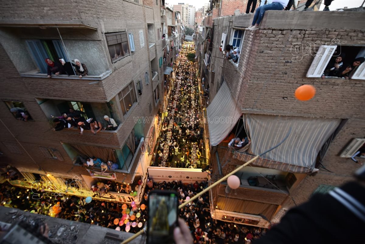 ورصدت عدسة فيتو، صور إفطار المطرية 2025، مع أذان المغرب، واحتفالات آلاف من الصائمين مع منظمين الحفل الذين مع إلقاء المئات من البلالين من الشرفات على المتواجدين.