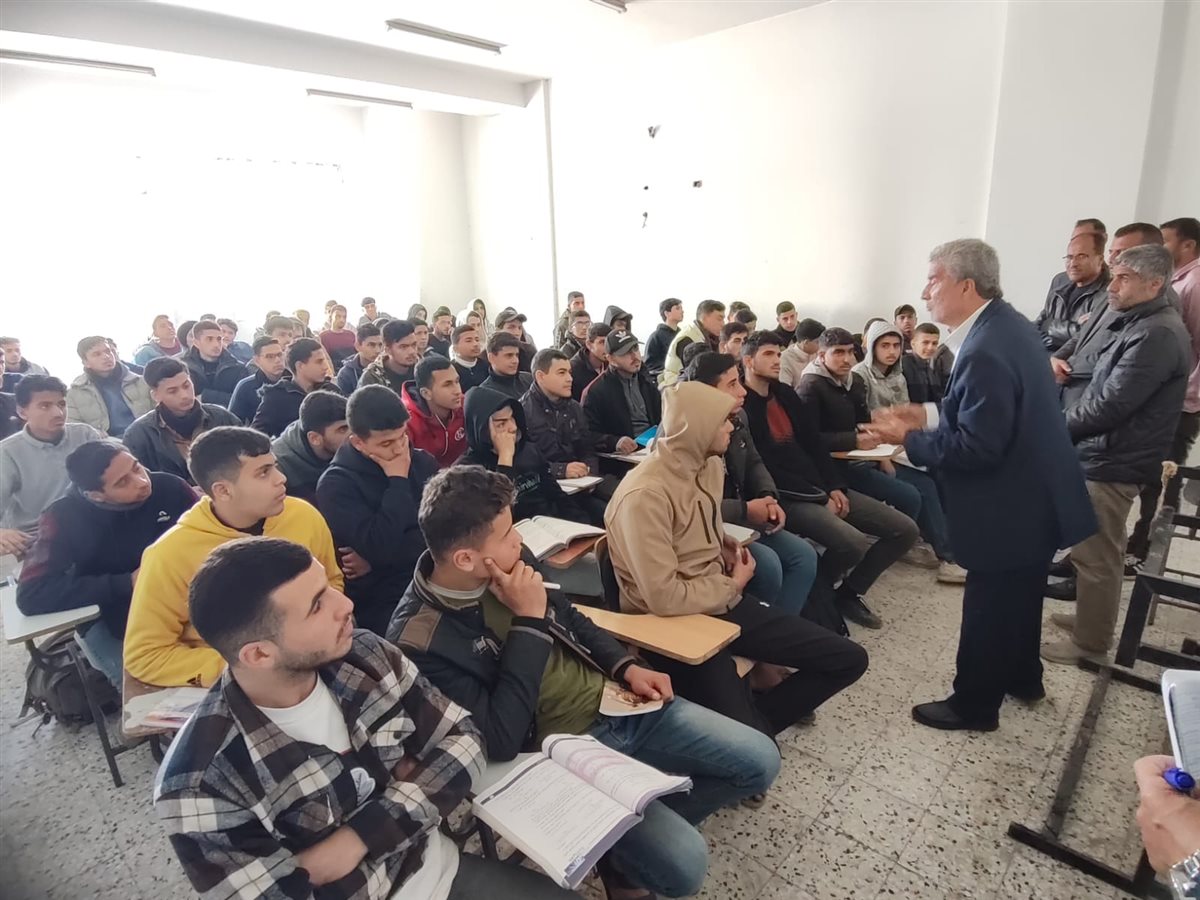 كما شكر أعضاء الهيئتين الإدارية والتدريسية على جهودهم التي يبذلوها لخدمة الطلبة وما يواجهونه من صعوبة في الوصول لمعاهدهم بسبب الحاجز وعدم توفر المواصلات والتدمير الكامل لشبكة الطرق، وكذلك للإخوة العاملين في دائرة الخدمات المساندة الذين يبذلون جهود مضنية في أعمال الصيانة والترميم.
