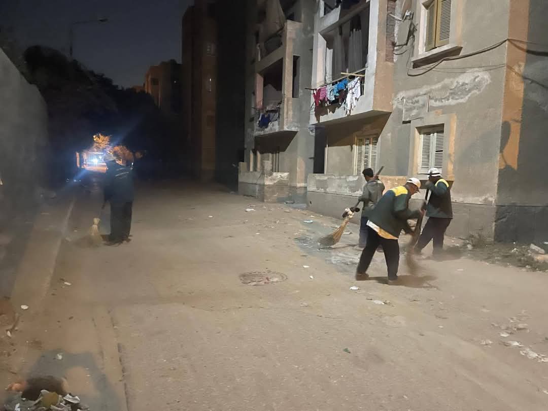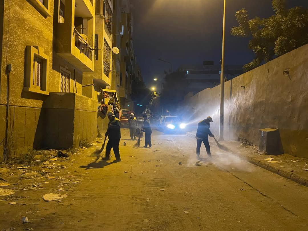 محافظة الجيزة تواصل حملات النظافة المسائية بمحيط مساكن الشباب والهرم