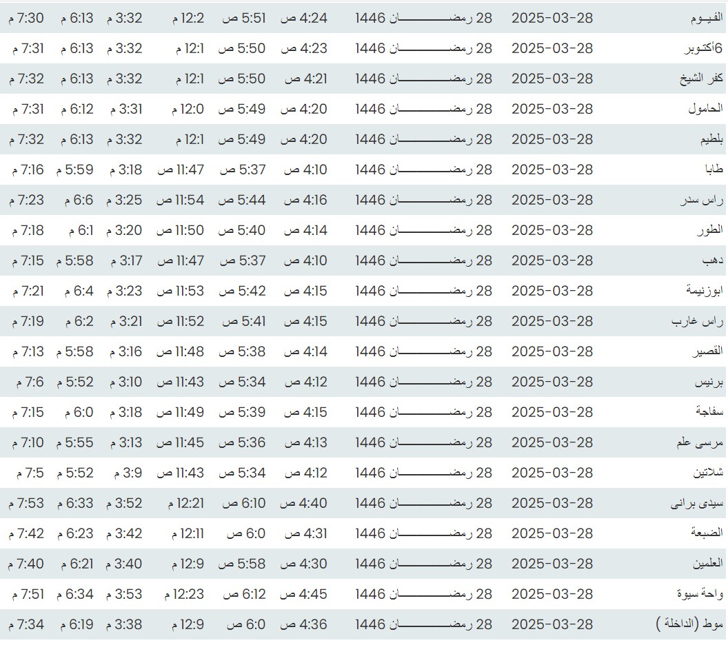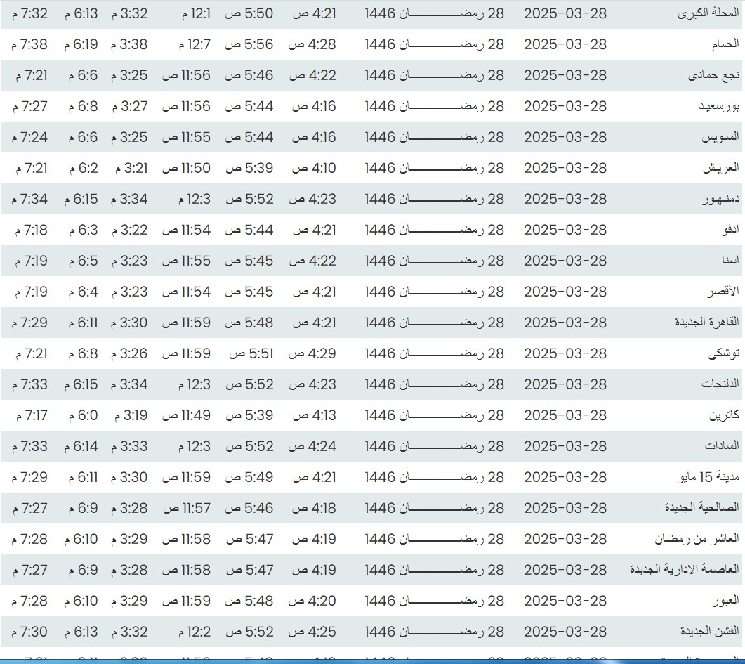 مواقيت الصلاة اليوم الجمعة 28 - 3- 2025 في القاهرة والمحافظات
