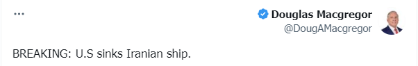 وأكد ماكجريجور أن "الولايات المتحدة أغرقت سفينة إيرانية."
