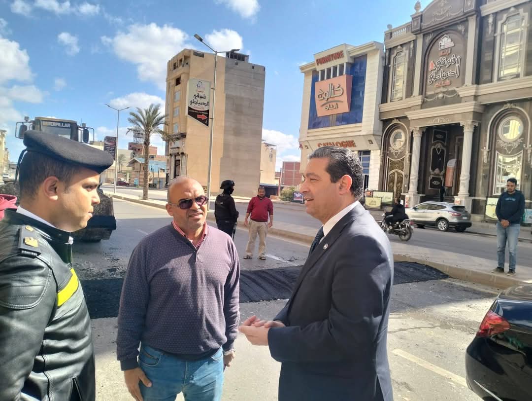 محافظ دمياط يتابع الأعمال الجارية لتنفيذ مطبات للتهدئة بطريق السيالة بورسعيد