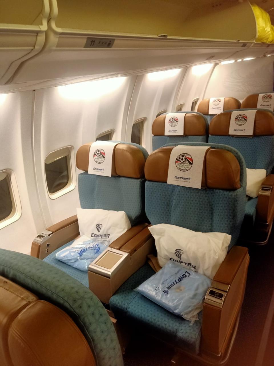 وكان فريق عمل من مصر للطيران استقبل بعثة المنتخب المصري بمطار القاهرة الدولي وأنهى إجراءات السفر في سهولة ويسر.