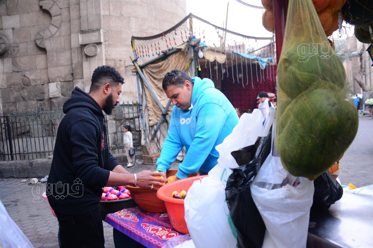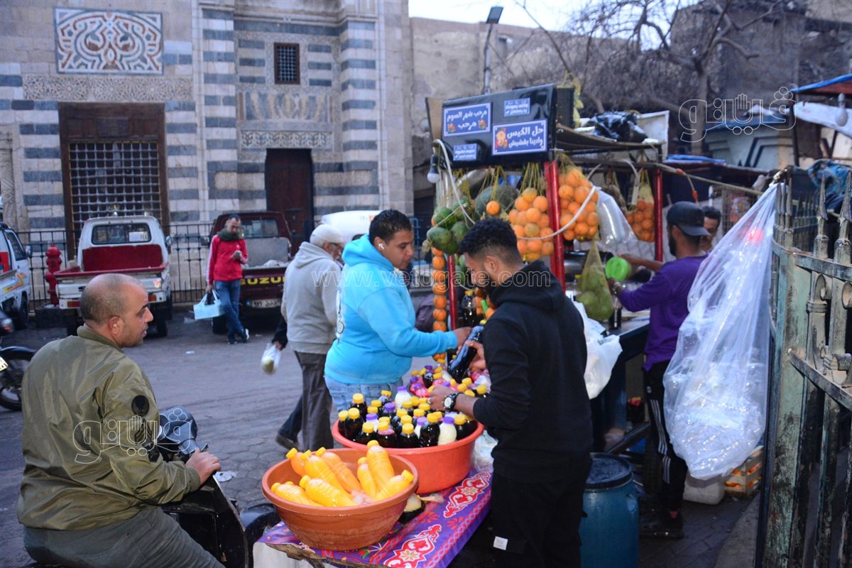 أمام باب زويلة في حي الجمالية، يقف السوهاجي بعربة عصير، يتوافد عليه عشاق المشروبات الطبيعية للاستمتاع بنكهاتها الطازجة وأسعارها المناسبة.