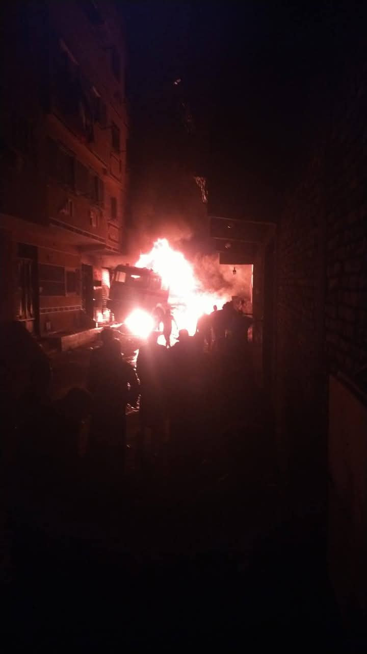 نشب حريق هائل بسيارة نقل محملة بـ20 طن سولار بشارع التروللي بمنطقة المرج، مما أسفر عن مصرع قائدها.