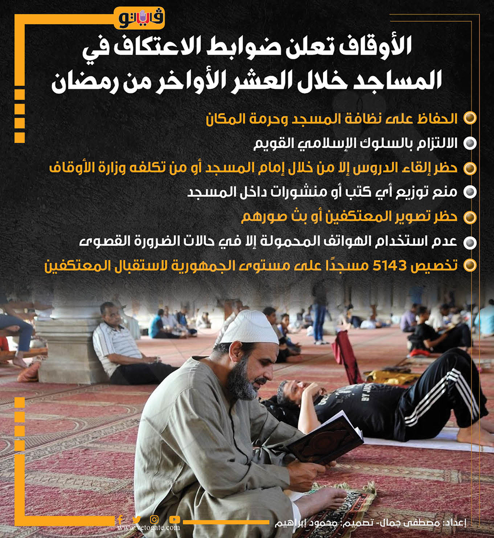 الأوقاف تعلن ضوابط الاعتكاف في المساجد خلال العشر الأواخر من رمضان (إنفوجراف)