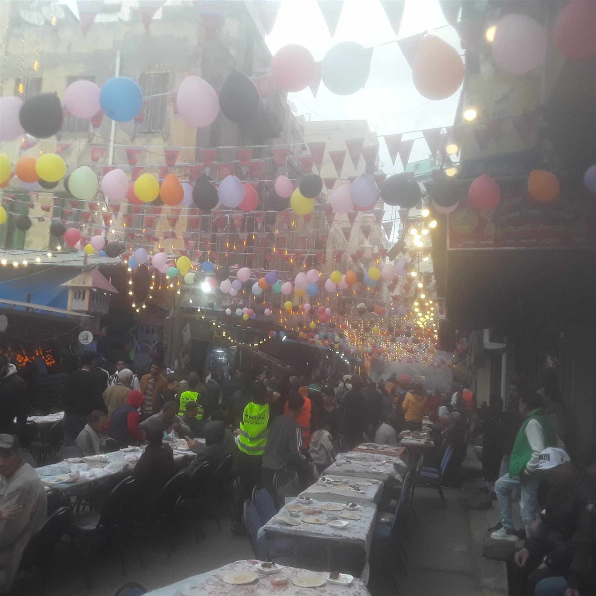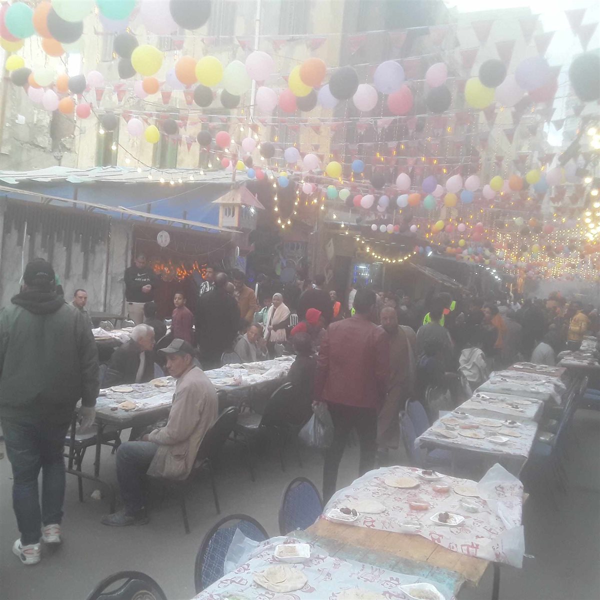 وغمرت المنطقة أجواء الفرحة، مع تعليق الزينة والبالونات وتشغيل الأغاني الرمضانية الشهيرة مع فرحة جميع المشاركين في تنظيم المائدة والأهالي في البيوت والمارة البهجة التي سادت شوارع منطقة العلواية بالإسكندرية.