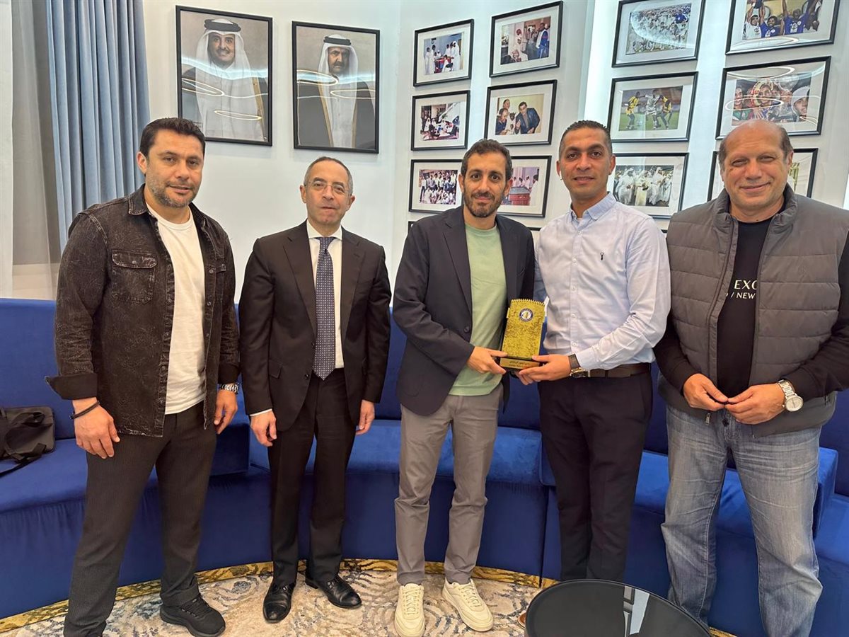 وحرص مسئولو نادى الخور القطري على إهداء السفير عمرو الشربيني ووفد البعثة المصرية برئاسة محمد أبو حسين درع النادى.