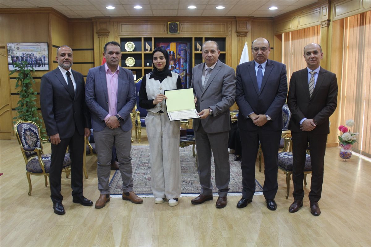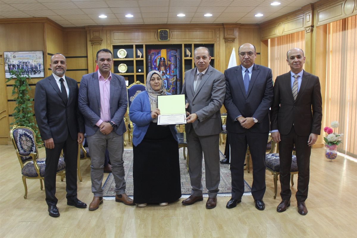 حضر التكريم الدكتور محمد عطية البيومي، نائب رئيس الجامعة لشؤون التعليم والطلاب، والدكتور محمد عبد العظيم، نائب رئيس الجامعة لشؤون خدمة المجتمع وتنمية البيئة، والدكتور طارق غلوش، نائب رئيس الجامعة لشؤون الدراسات العليا والبحوث.