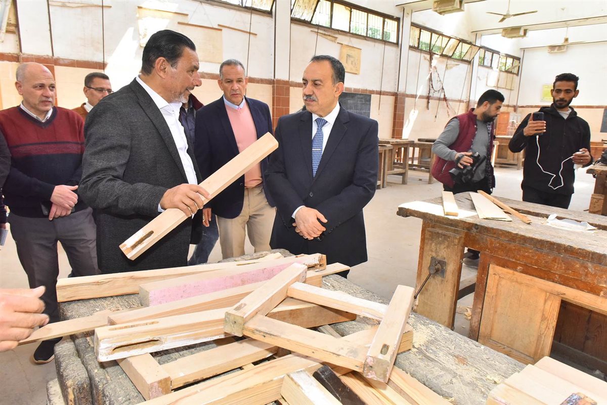 ورافقه خلال الجولة محمد إبراهيم الدسوقي وكيل وزارة التربية والتعليم بأسيوط، ومحمد النمر مدير عام التعليم الفني بمديرية التربية والتعليم بأسيوط، وممدوح جبر رئيس حي غرب أسيوط، وكمال زهران مدير المدرسة، وياسر حسن رئيس قسم النجارة بالمدرسة وعدد من المعلمين بالمدرسة.
