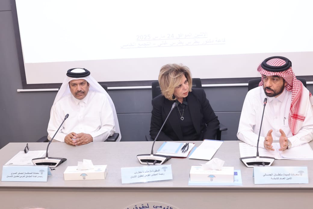 وأكدت السفيرة مشيرة خطاب رئيسة المجلس على ضرورة تمكين الشعوب العربية من التمتع الكامل بحقوقها دون انتقاص، مشددةً على أهمية تعزيز التعاون الإقليمي لحماية هذه الحقوق وترسيخها. كما أشارت إلى أن الأوضاع المأساوية التي يشهدها الشعب الفلسطيني تعكس حجم التحديات التي تواجه حقوق الإنسان في المنطقة مما يستدعي تكثيف الجهود العربية المشتركة لضمان احترام الحقوق الأساسية وصون كرامة الإنسان.