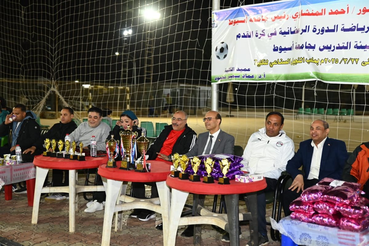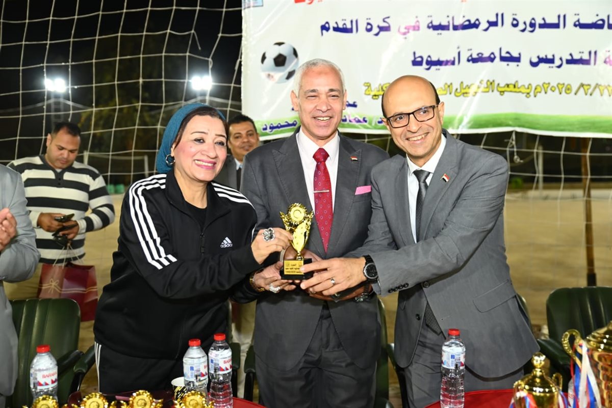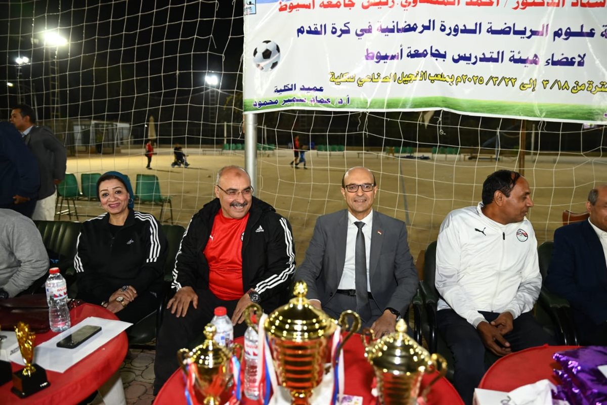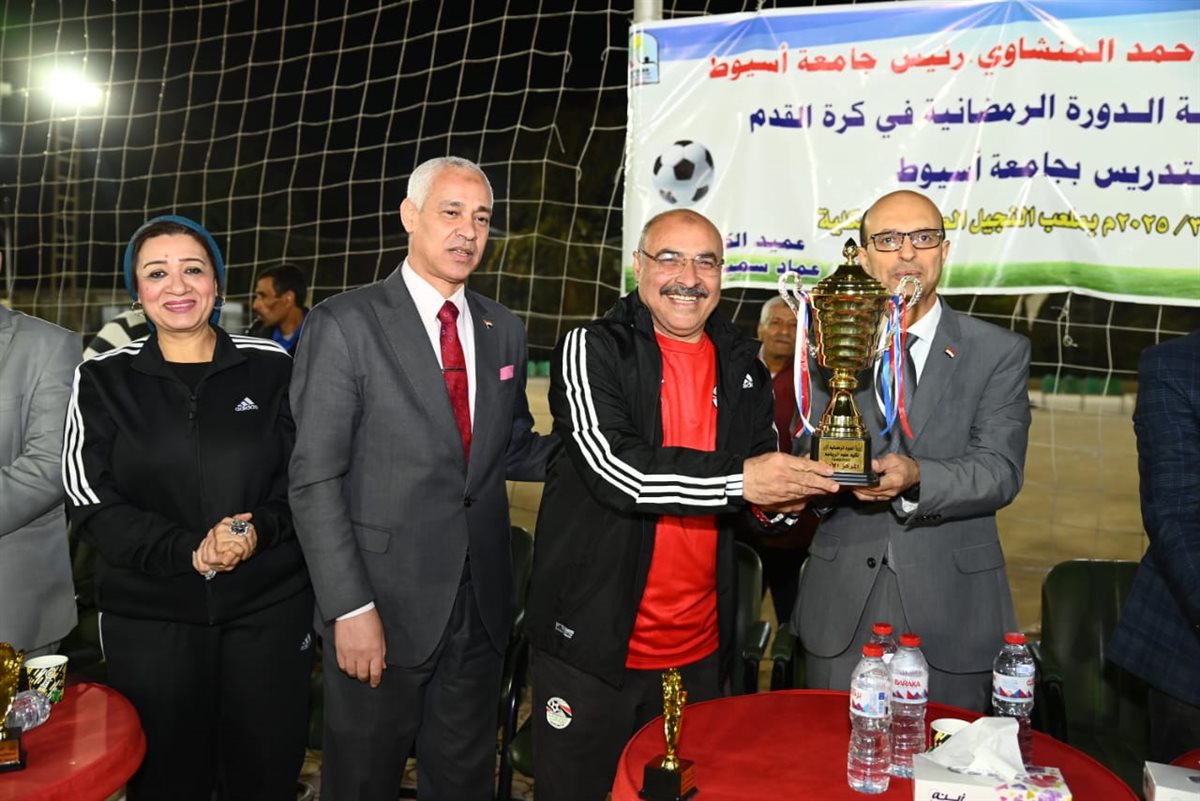 كرم الدكتور أحمد المنشاوي، رئيس جامعة أسيوط، الفرق الفائزة في الدورة الرمضانية لكرة القدم لأعضاء هيئة التدريس، التي نظمتها كلية علوم الرياضة بالجامعة، والتي أقيمت على ملعب النجيل الصناعي بالكلية، واستمرت فعالياتها من 18 إلى 22 مارس، بمشاركة 11 فريقًا من مختلف كليات الجامعة، تحت إشراف الدكتور عماد سمير، عميد كلية علوم الرياضة، والدكتور عاصم صابر، رئيس قسم المناهج وطرق تدريس التربية الرياضية والمدير الفني للبطولة.