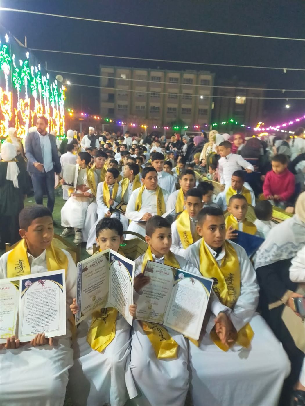 بدأت الاحتفالية بـ محافظة الغربية بمسيرة جماعية للمكرمين جابت شوارع القرية، وسط أجواء من الفرح والفخر، حيث علت الزغاريد من النساء، وتعالت تكبيرات الرجال بينما ارتدى الطلاب وشاحًا أصفر كُتب عليه "حفظة كتاب الله" بالإضافة إلى جلاليب بيضاء تحمل أسماءهم، في تعبير رمزي عن فخرهم بهذا الإنجاز العظيم.