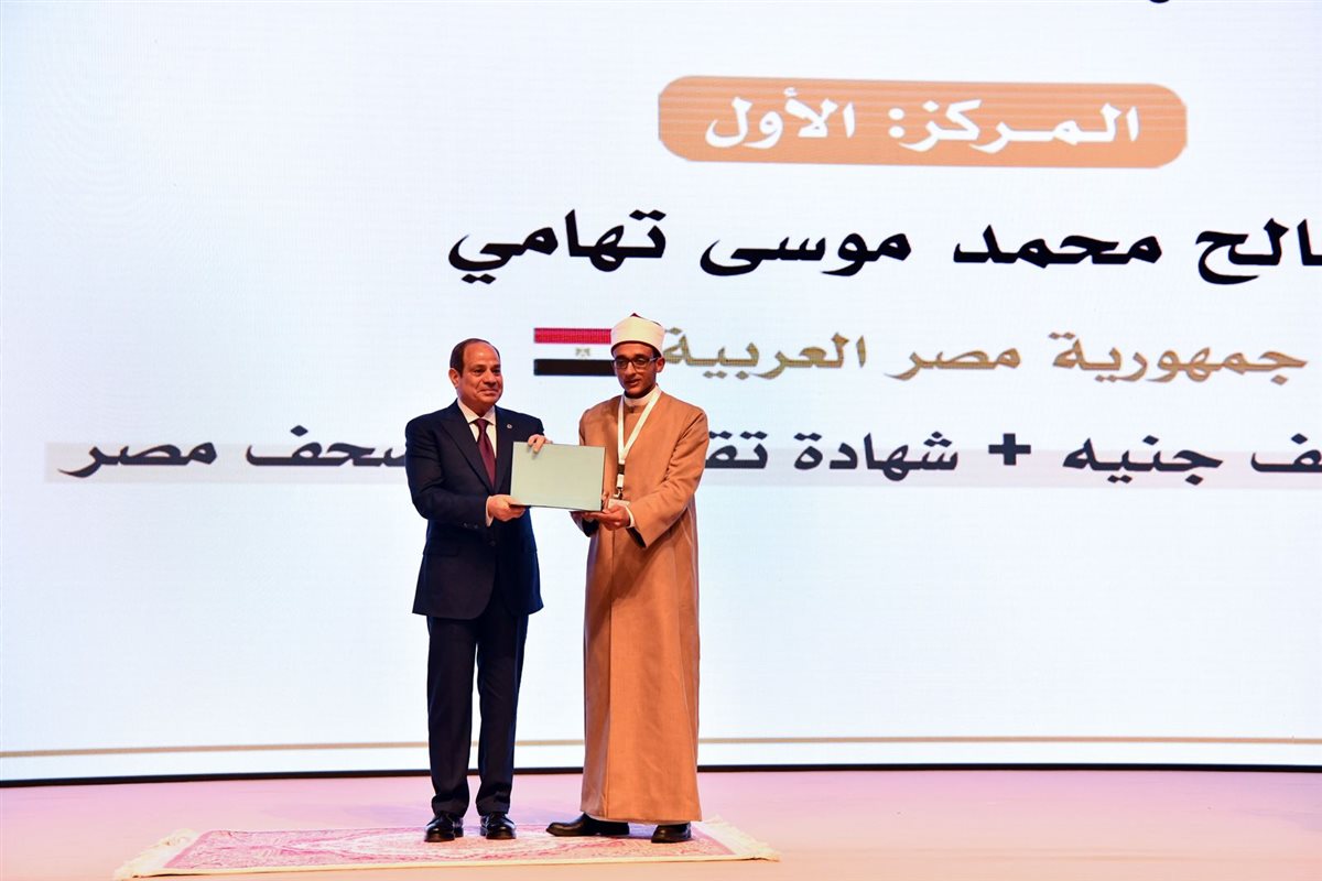 وقام الرئيس خلال الاحتفالية بتكريم الفائزين في المسابقة العالمية الحادية والثلاثين للقرآن الكريم، في فروع الحفظ والتجويد والتفسير ومعرفة أسباب النزول، وأيضًا لحفظة القرآن الكريم وتجويده للناطقين بغير اللغة العربية، كما تم تكريم حفظة القرآن الكريم من ذوي الهمم.