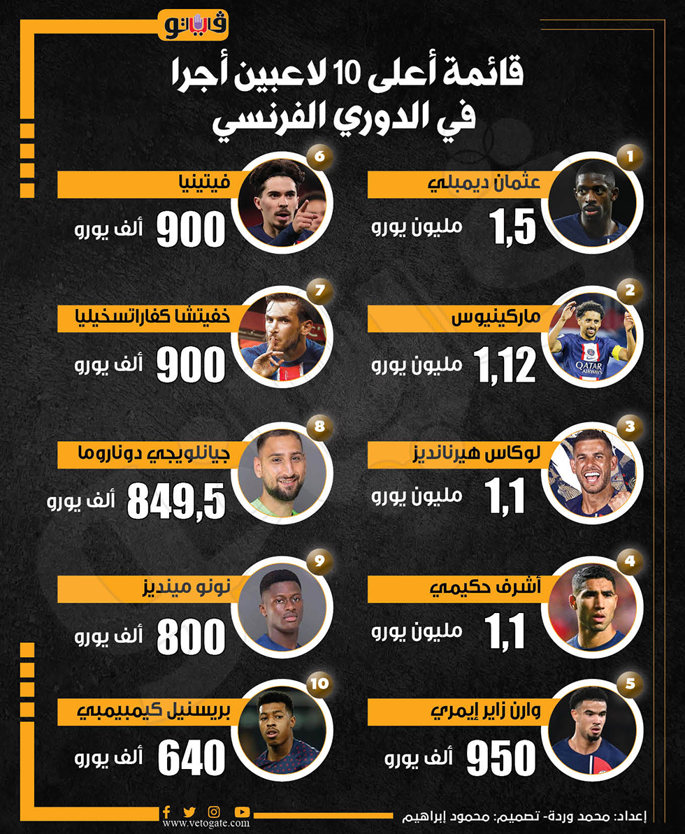 قائمة أعلى 10 لاعبين أجرا في الدوري الفرنسي (إنفوجراف)