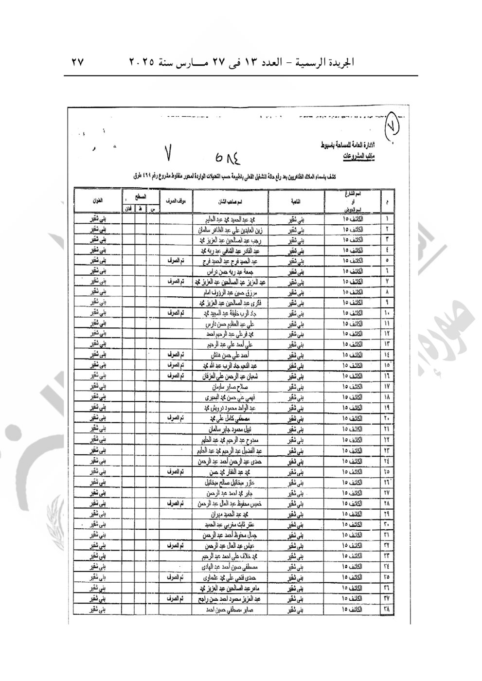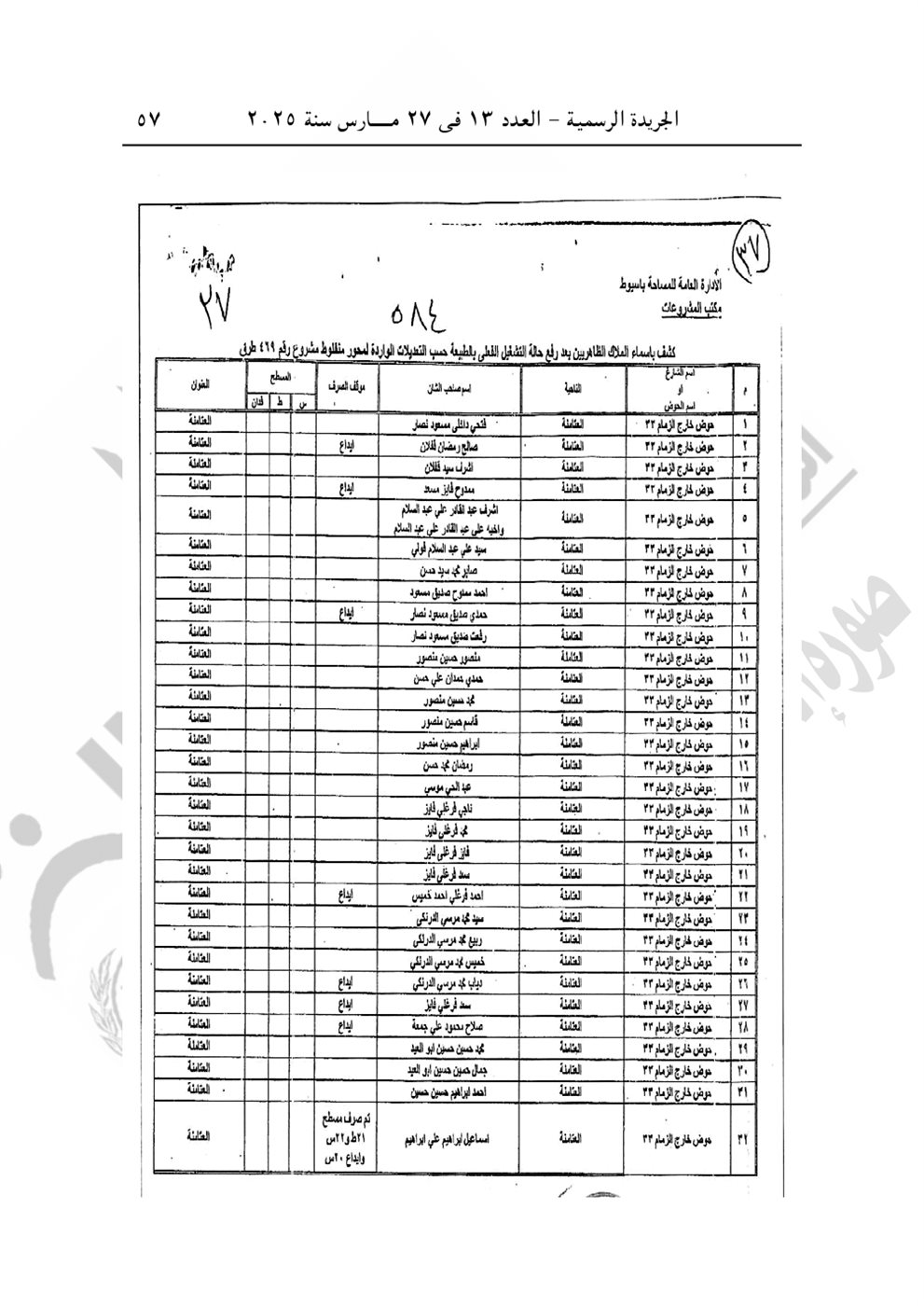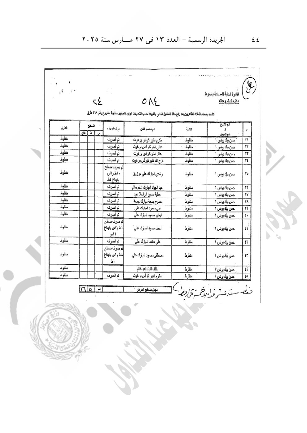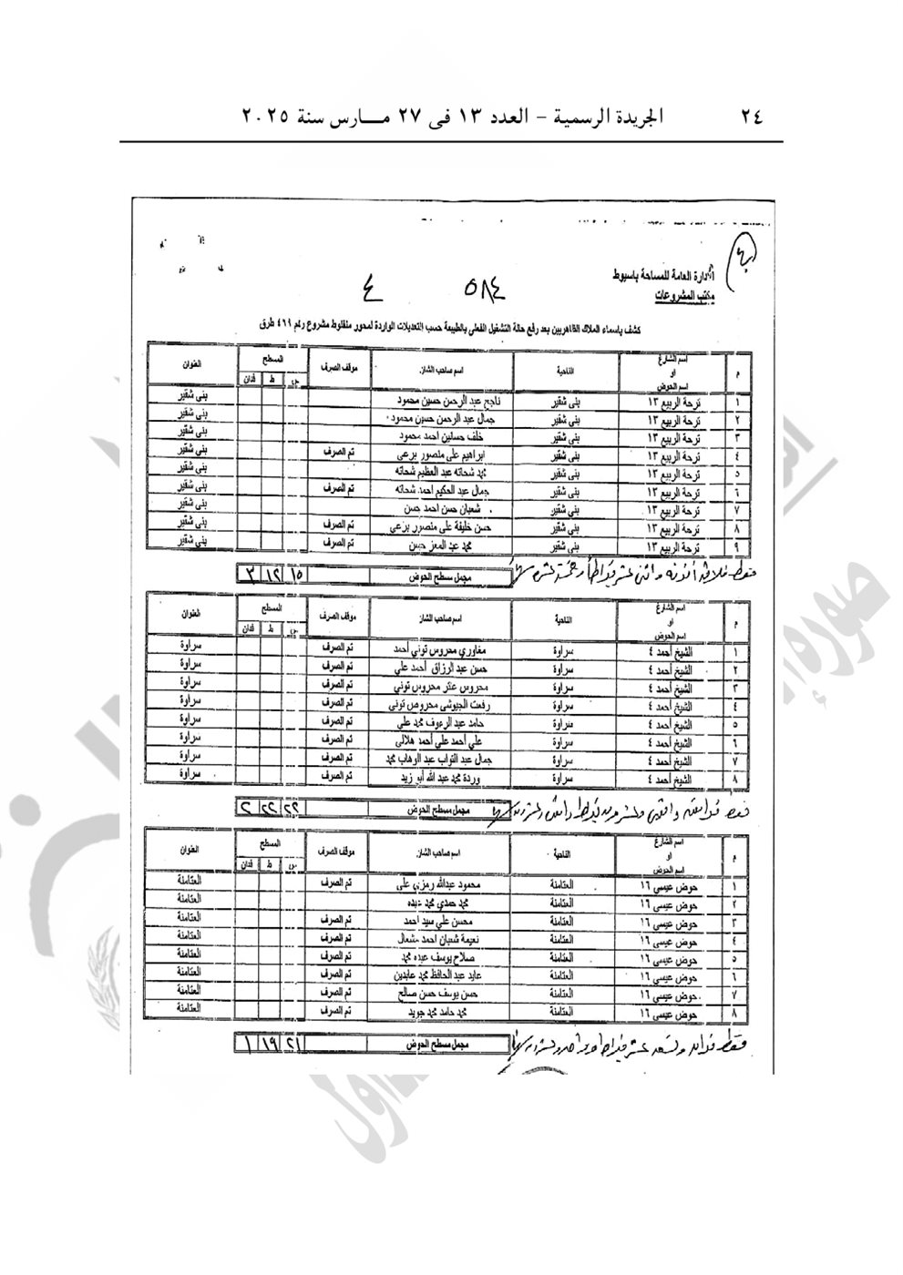 نشرت الجريدة الرسمية في عددها رقم 13، الصادر في 27 مارس 2025، 9 قرارات جديدة اليوم الخميس لرئيس الوزراء الدكتور مصطفى مدبولي، بشأن الاستيلاء بطريق التنفيذ المباشر على أراضي لتنفيذ بعض المشروعات، وإسقاط الجنسية المصرية عن 5 مصريين لالتحاقهم بالخدمة العسكرية لدولة أجنبية.