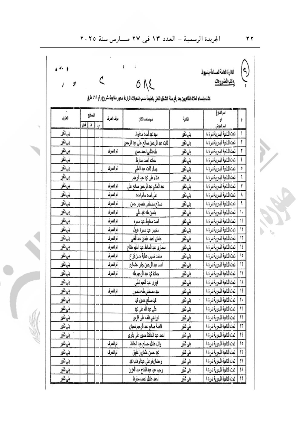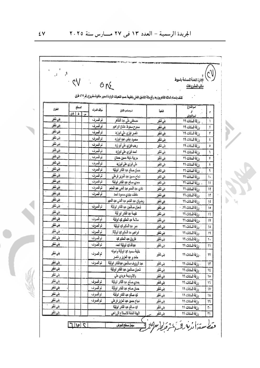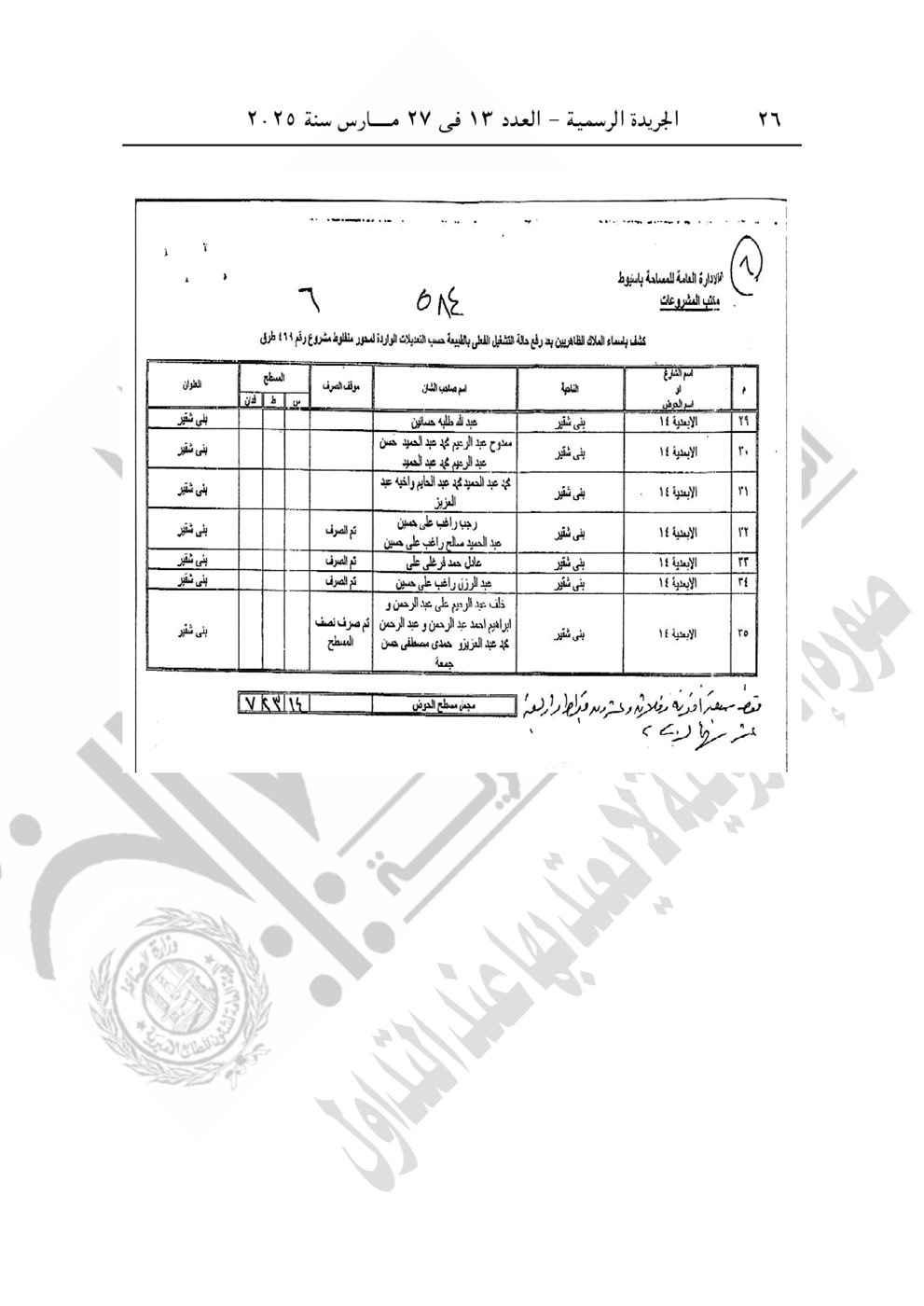 نشرت الجريدة الرسمية في عددها رقم 13، الصادر في 27 مارس 2025، 9 قرارات جديدة اليوم الخميس لرئيس الوزراء الدكتور مصطفى مدبولي، بشأن الاستيلاء بطريق التنفيذ المباشر على أراضي لتنفيذ بعض المشروعات، وإسقاط الجنسية المصرية عن 5 مصريين لالتحاقهم بالخدمة العسكرية لدولة أجنبية.