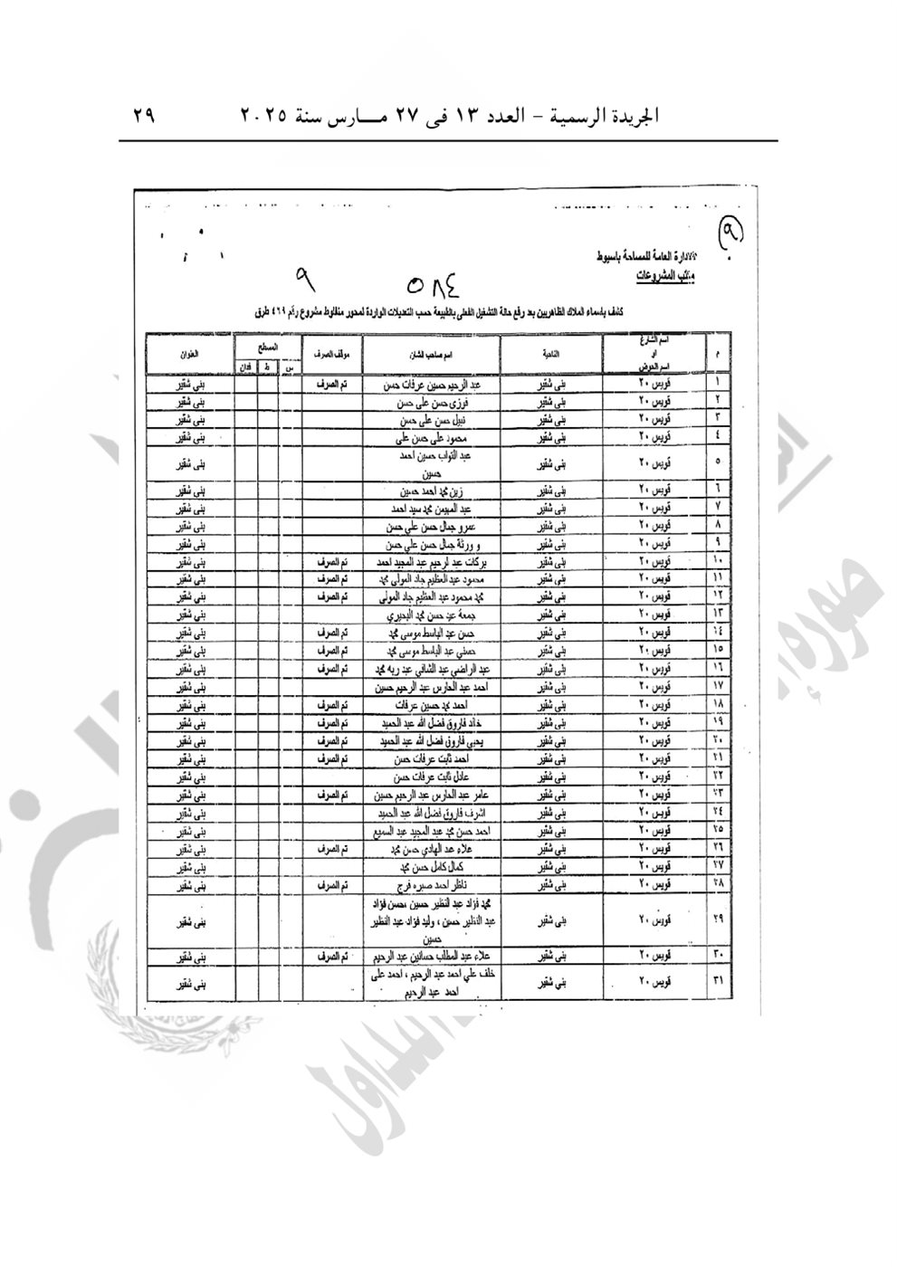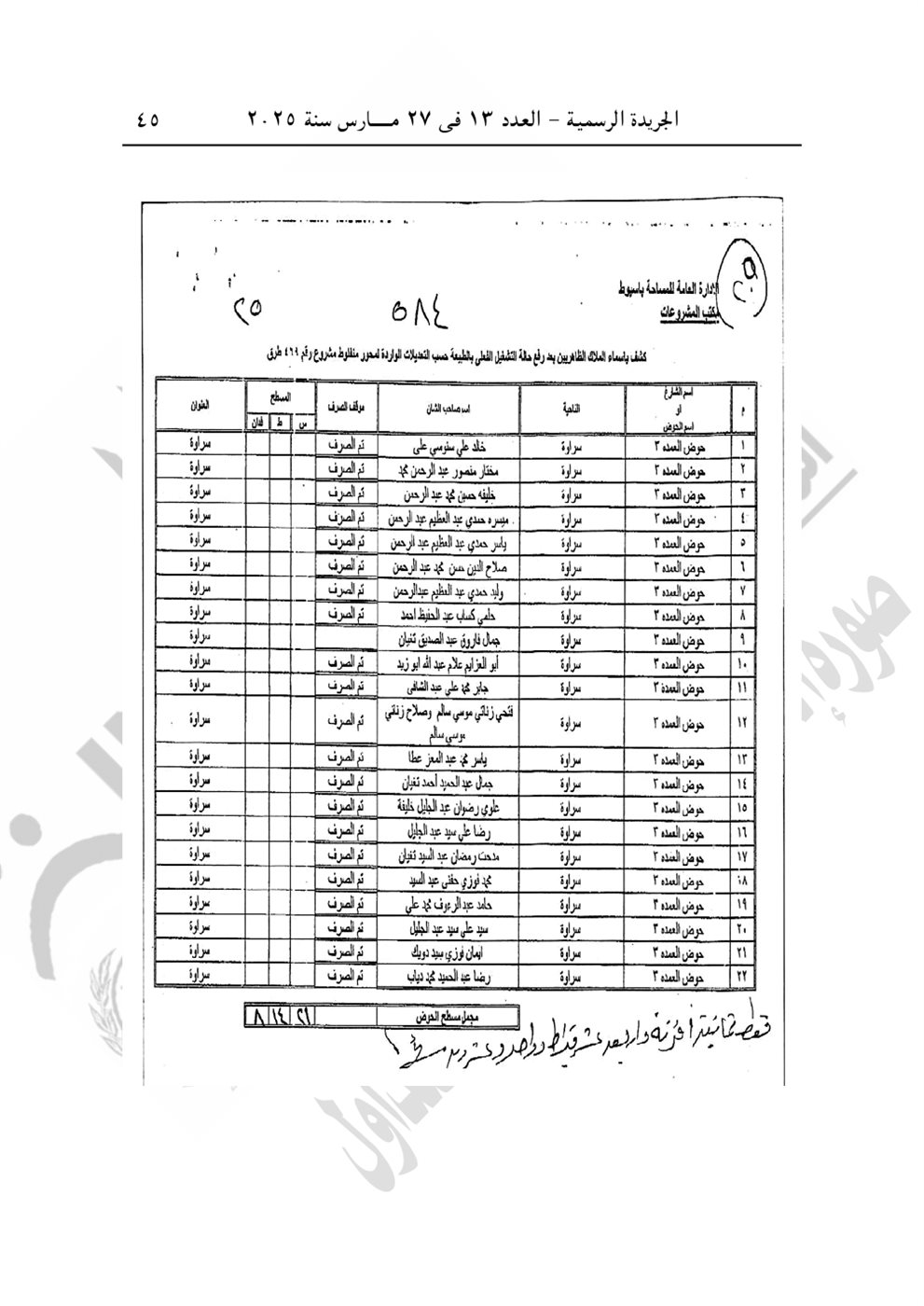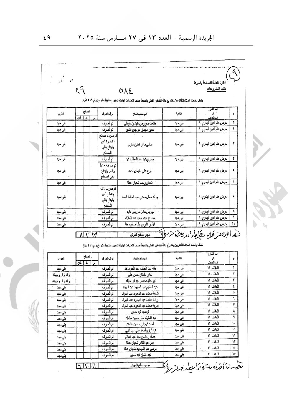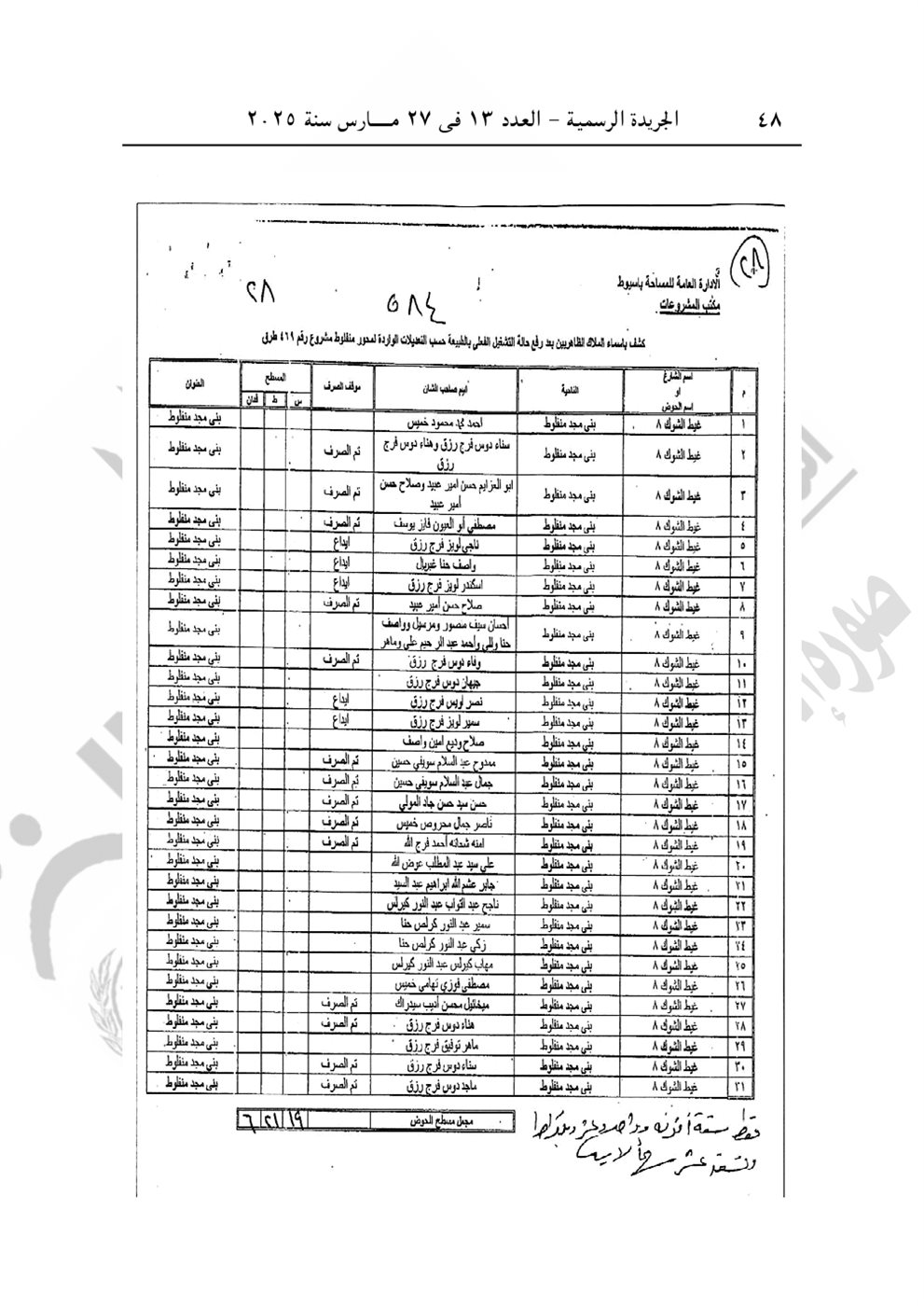 نشرت الجريدة الرسمية في عددها رقم 13، الصادر في 27 مارس 2025، 9 قرارات جديدة اليوم الخميس لرئيس الوزراء الدكتور مصطفى مدبولي، بشأن الاستيلاء بطريق التنفيذ المباشر على أراضي لتنفيذ بعض المشروعات، وإسقاط الجنسية المصرية عن 5 مصريين لالتحاقهم بالخدمة العسكرية لدولة أجنبية.
