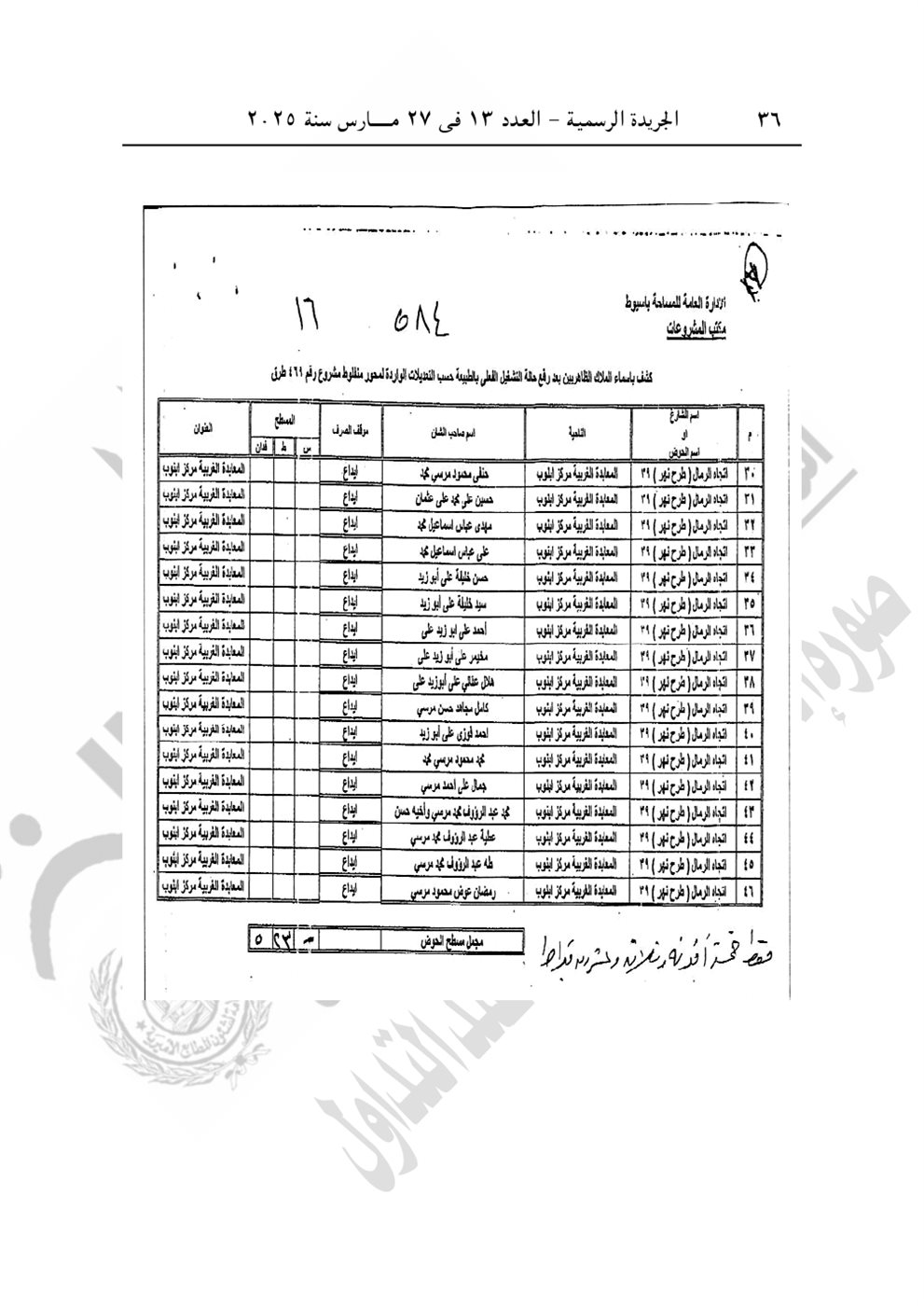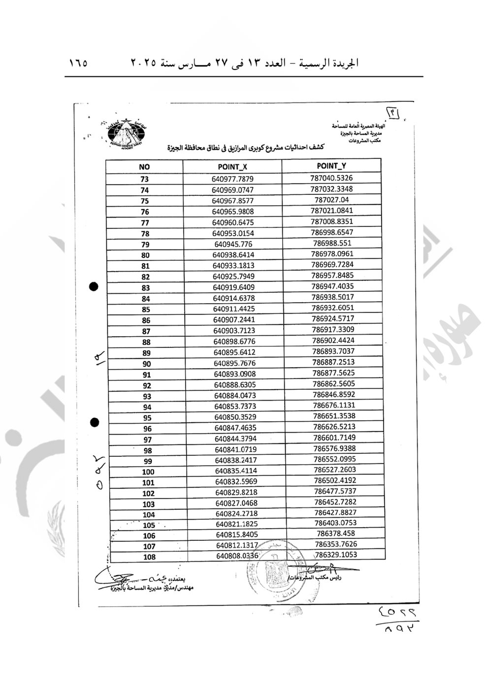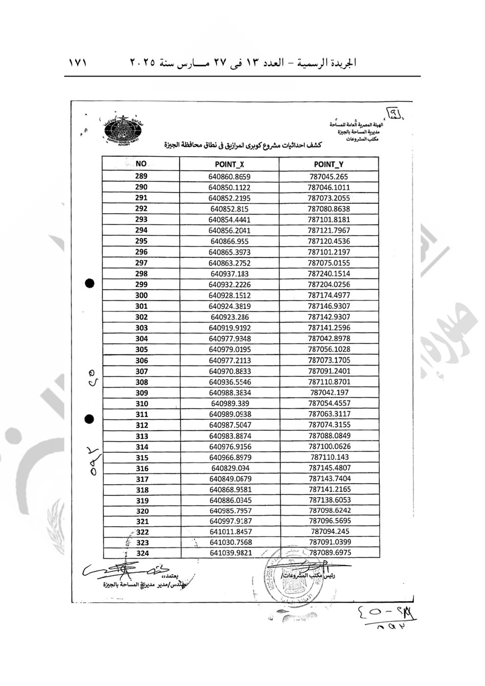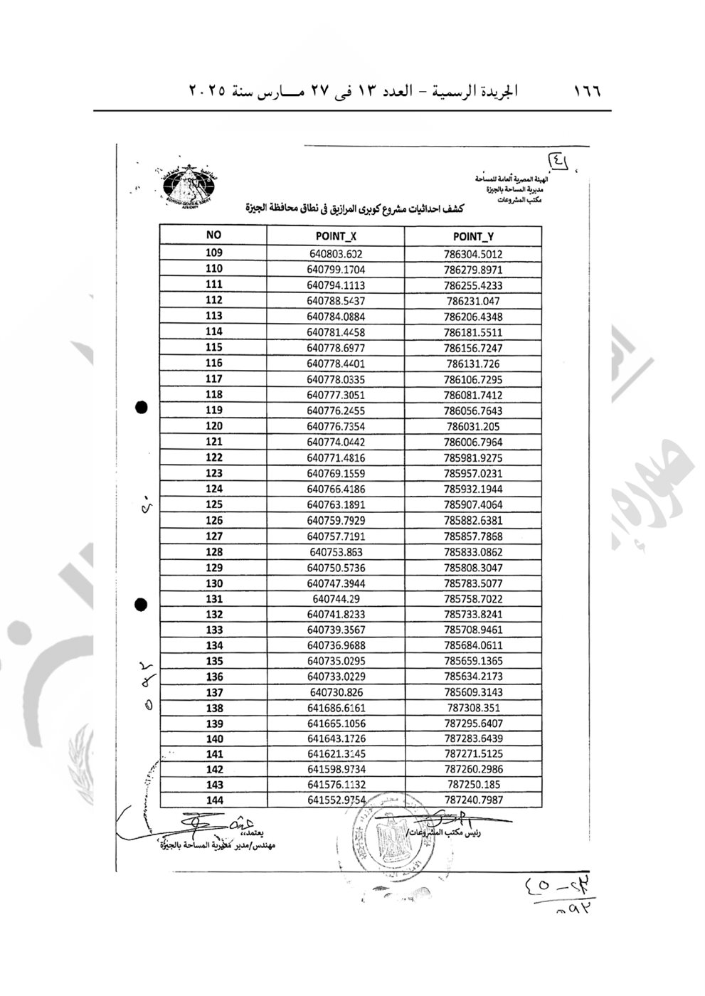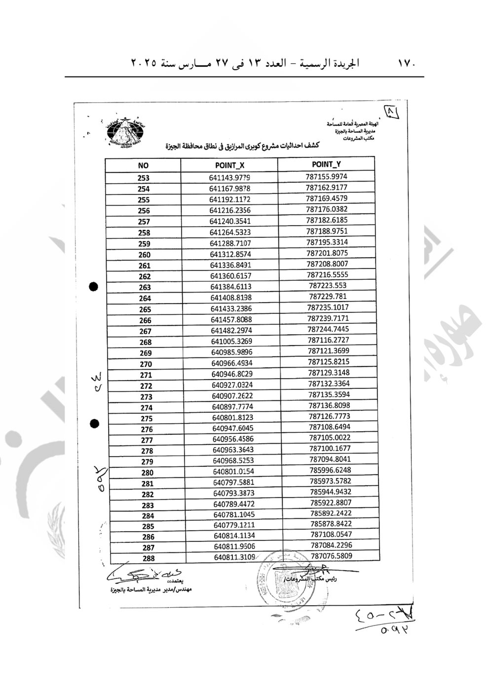 -وقرار رئيس مجلس الوزراء رقم 593 لسنة 2025، باعتبار مشروع إنشاء كوبرى للسيارات أعلى مزلقان المرازيق بمركز البدرشين محافظة الجيزة، من أعمال المنفعة العامة.