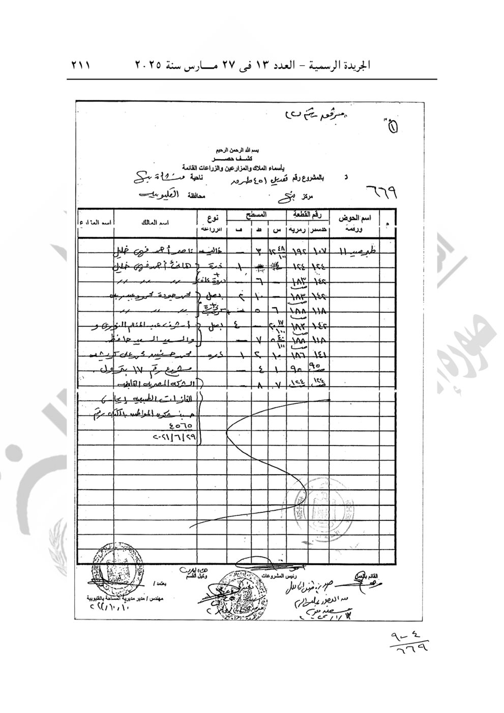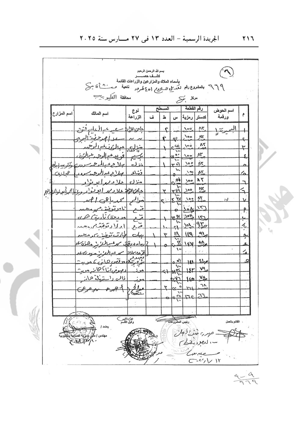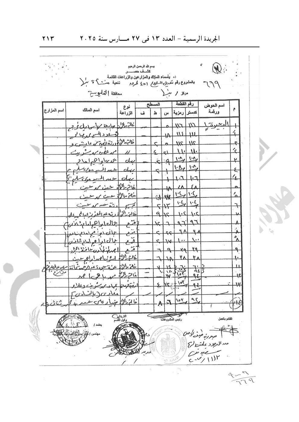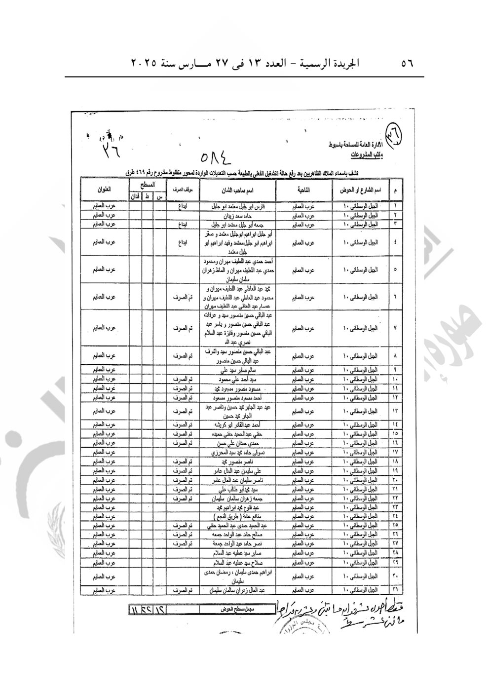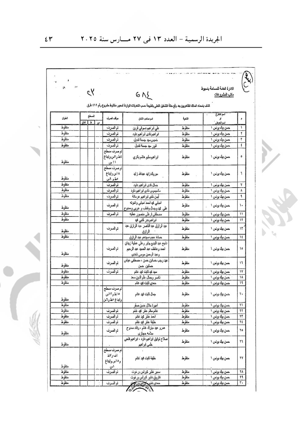 -وقرار رئيس مجلس الوزراء رقم 669 لسنة 2025، بشأن إضافة الخرائط المساحية وكشوف الملاك الظاهرين المرفقة بهذا القرار، إلى الخرائط المساحية والكشوف المرفقة بقرار رئيس مجلس الوزراء رقم 186 لسنة، والذي يقضى باعتبار مشروع إنشاء المحور الحر شرق الرياح التوفيقى فى المسافة من بنها حتى ميت غمر فى نطاق محافظتى القليوبية والدقهلية من أعمال المنفعة العامة.