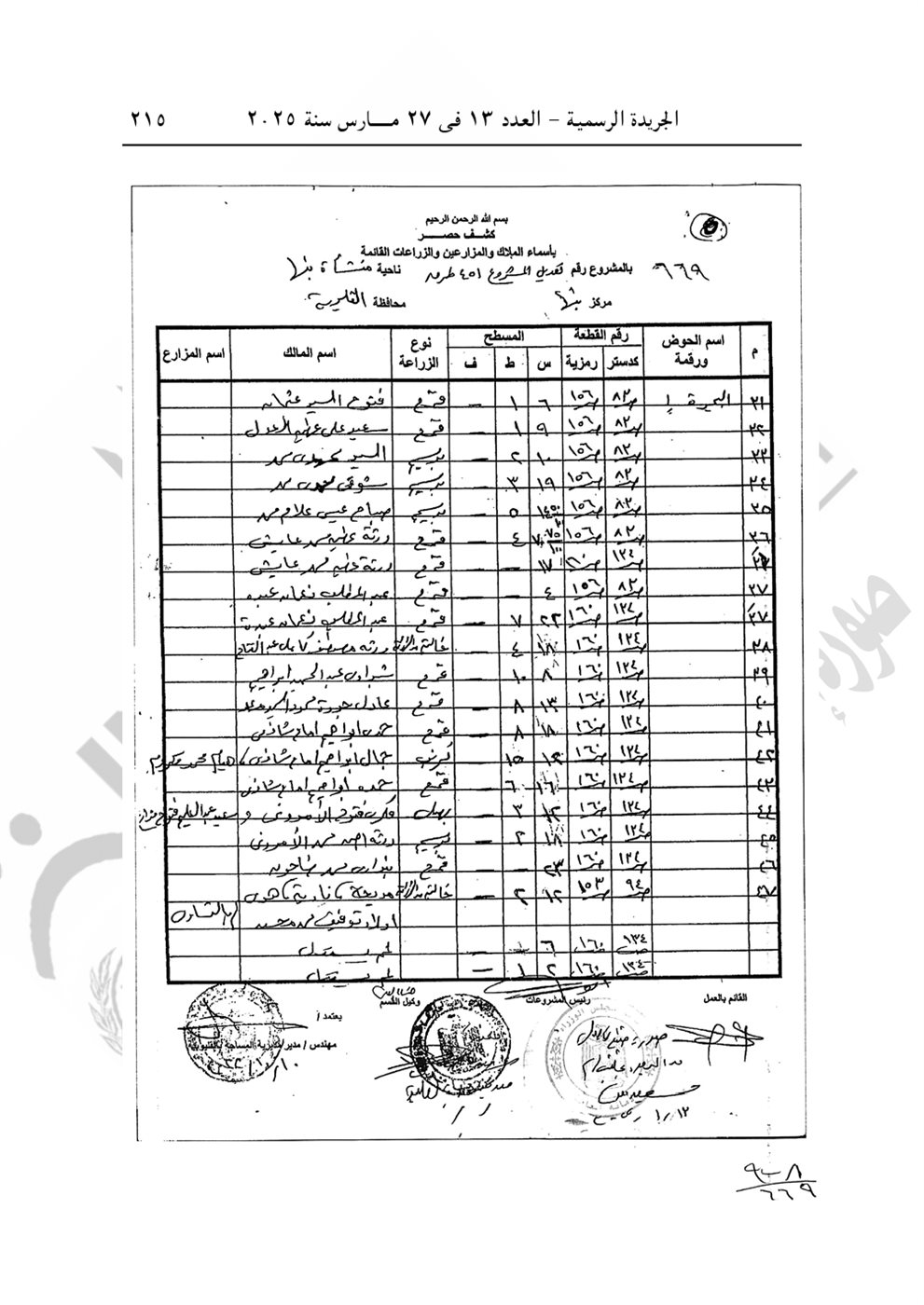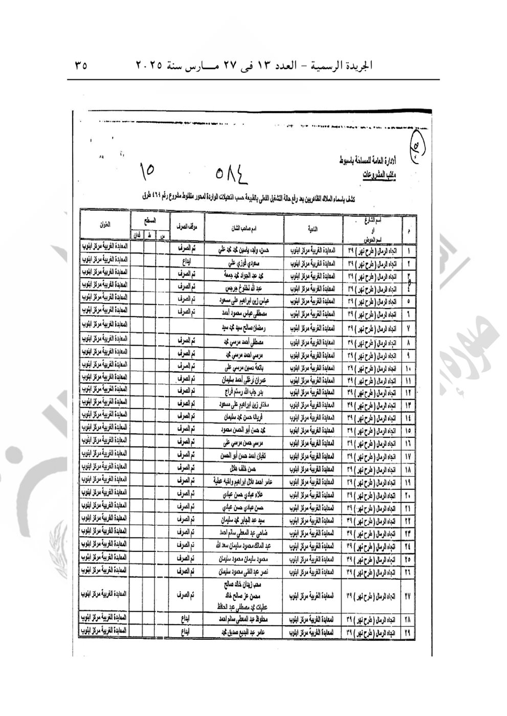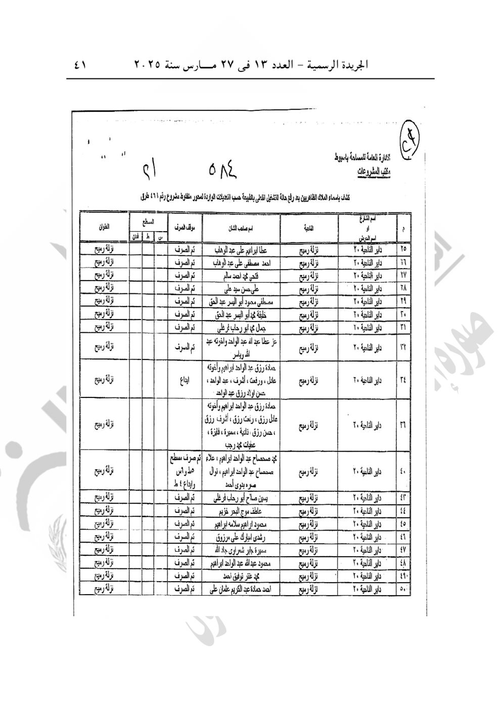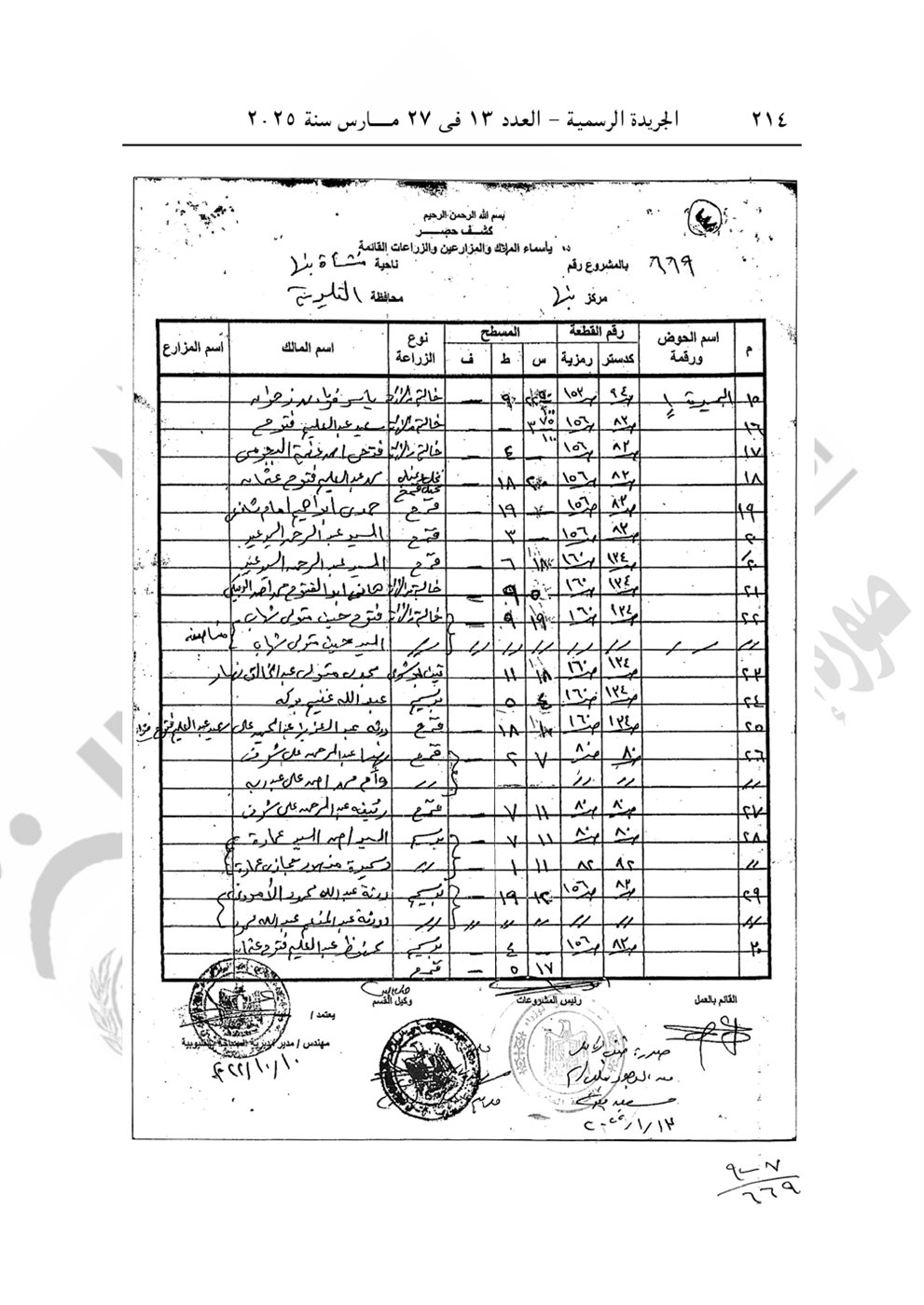 -وقرار رئيس مجلس الوزراء رقم 669 لسنة 2025، بشأن إضافة الخرائط المساحية وكشوف الملاك الظاهرين المرفقة بهذا القرار، إلى الخرائط المساحية والكشوف المرفقة بقرار رئيس مجلس الوزراء رقم 186 لسنة، والذي يقضى باعتبار مشروع إنشاء المحور الحر شرق الرياح التوفيقى فى المسافة من بنها حتى ميت غمر فى نطاق محافظتى القليوبية والدقهلية من أعمال المنفعة العامة.