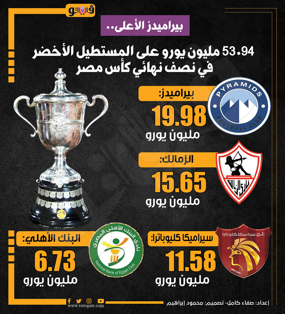 بيراميدز الأعلى.. 53.94 مليون يورو على المستطيل الأخضر في نصف نهائي كأس مصر (إنفوجراف)