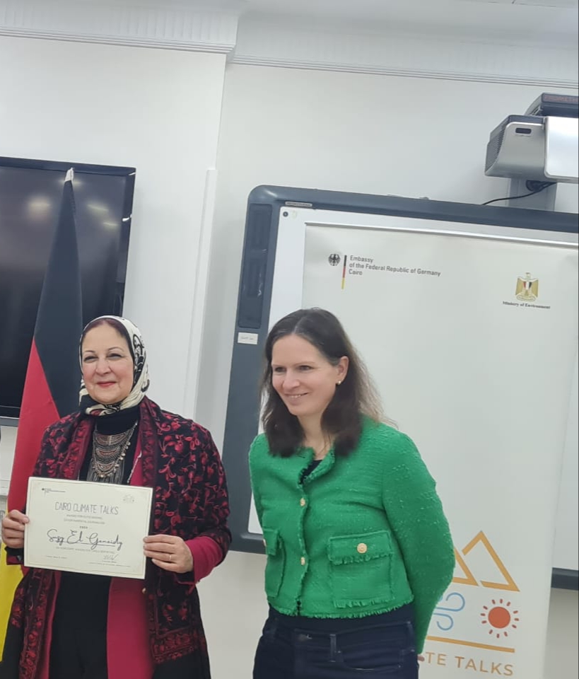 سوزي الجنيدي تحصل على جائزة التميز من منتدى القاهرة للتغير المناخي