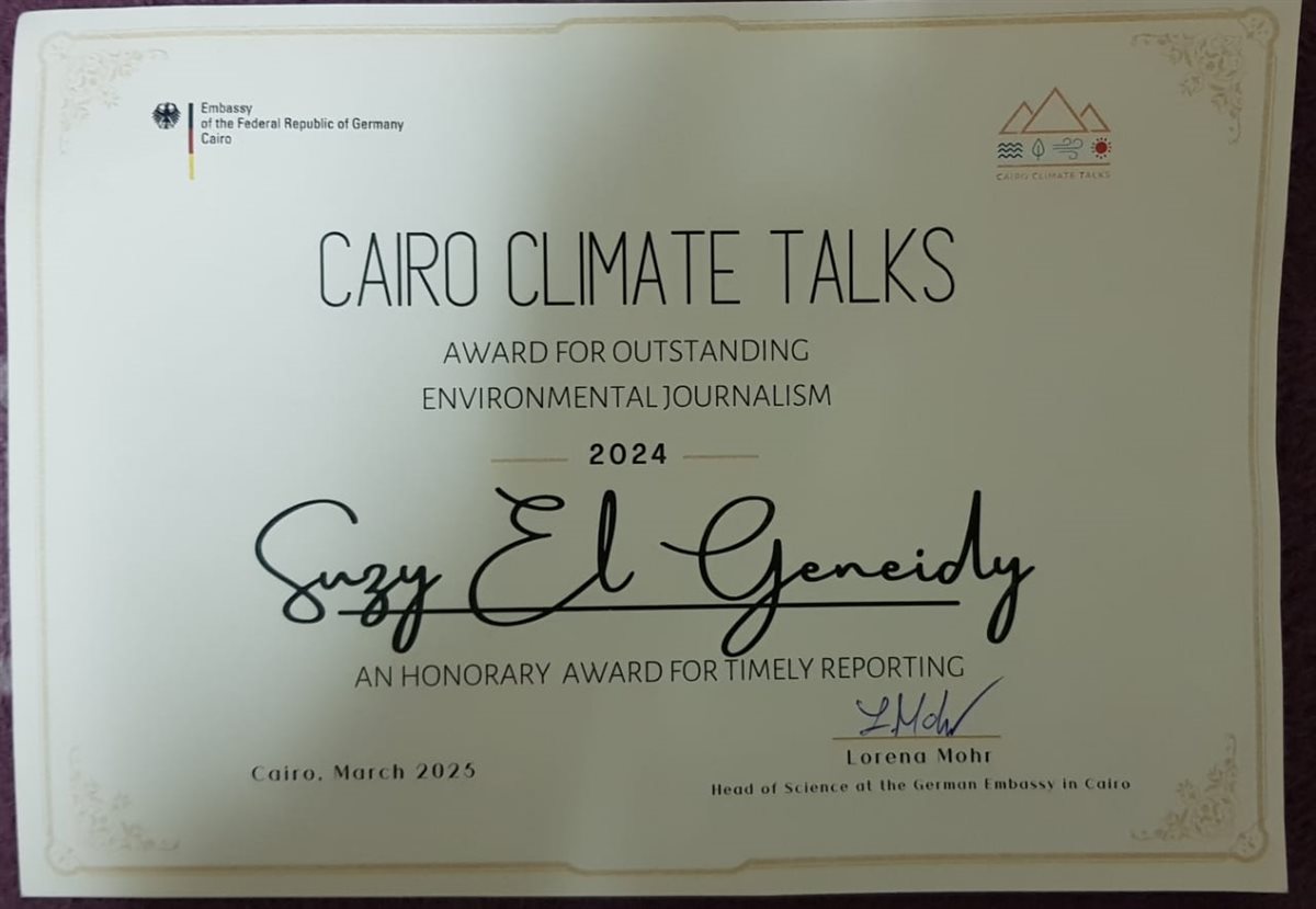 حصلت الزميلة سوزي الجنيدي نائب رئيس تحرير الأهرام العربي على جائزة التميز للتغطية الصحفية المميزة لموضوعات التغير المناخي وتغطية المؤتمر الدولي للأطراف في اتفاقية الأمم المتحدة الإطارية بشأن التغير المناخي لعام ٢٠٢٤.