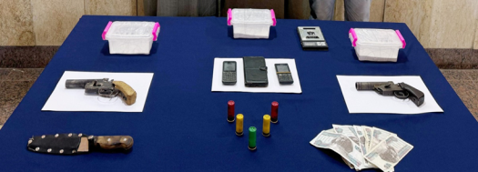 وفى سوهاج؛ ضبط 3 عناصر إجرامية بدائرة مركز شرطة العسيرات وبحوزتهم 5 كيلو جرام لمخدر الآيس "الشابو" – 2 فرد خرطوش – عدد من الطلقات – سلاح أبيض.