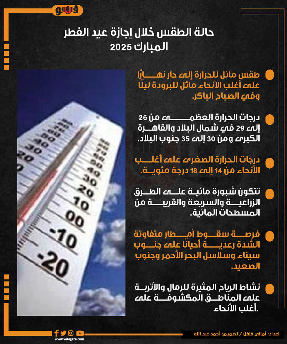 حالة الطقس خلال إجازة عيد الفطر المبارك 2025 (إنفوجراف)