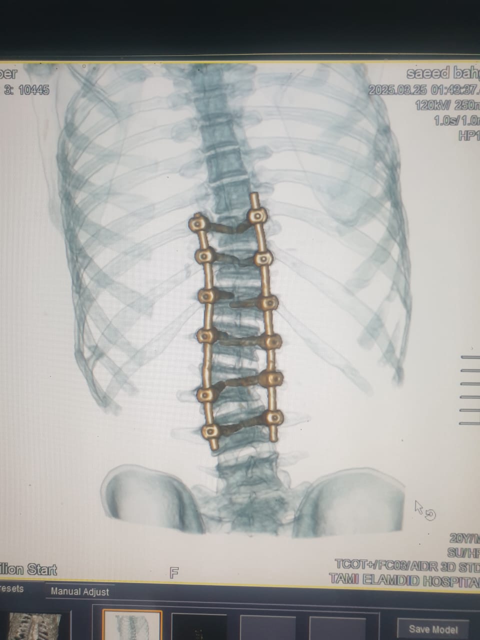 فيما أوضح الدكتور احمد البيلى وكيل المديرية للطب العلاجى أنه عقب مناظرة الاشعة والفحوصات تم إجراء العملية التى استغرقت 4 ساعات كاملة لإصلاح الاعوجاج بواسطه تثبيت الفقرات الصدريه والقطنيه واستعدال العمود الفقرى مع خروج المريض من المستشفى وتحسن حالته.