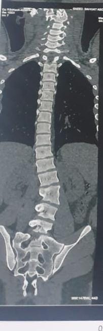 وأضاف مدكور أنه جرى استقبال المريض وهو يعانى من الالام شديدة بالظهر مع عدم الاستجابه للعلاج الدوائي والعلاج الطبيعى وعقب الفحص تبين وجود اعوجاج بالفقرات الصدريه والقطنيه بالعمود الفقري.