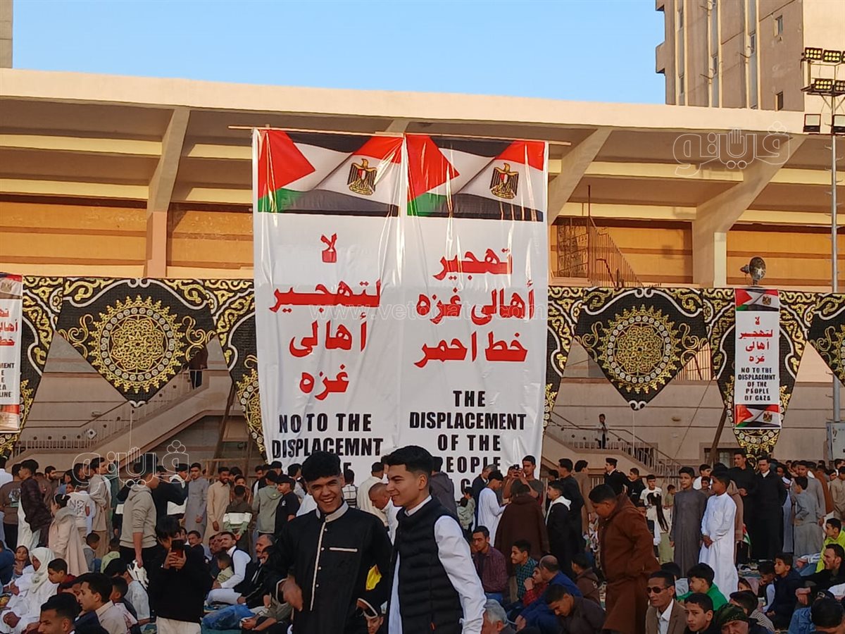 علق عدد من أهالي محافظة مطروح لافتات رفض تهجير أهالي غزة تضامنًا معهم وتأييدًا للموقف المصري الرافض لمحاولات تهجير أهالي غزة من أراضيهم، وذلك بساحة صلاة عيد الفطر المبارك.