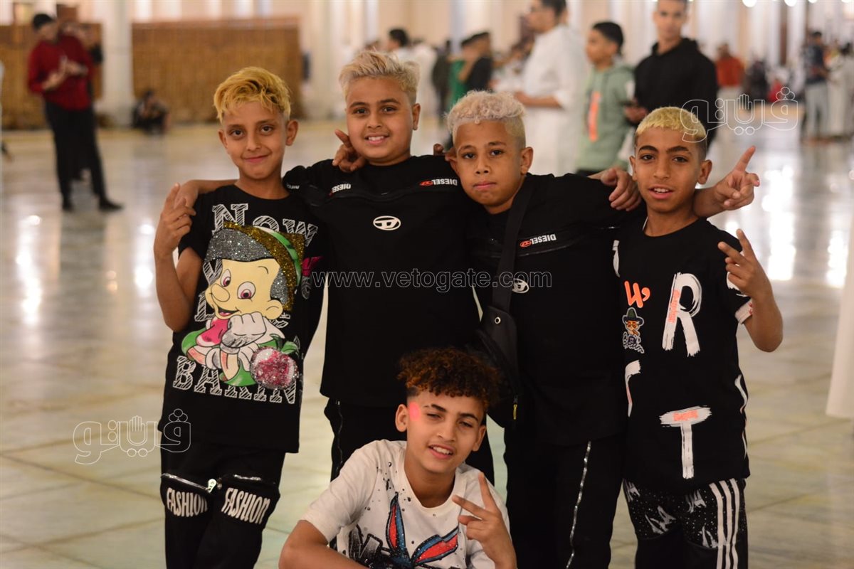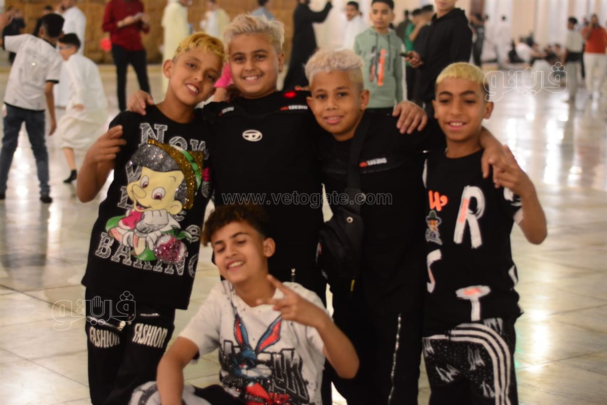 شهدت احتفالات أول أيام عيد الفطر المبارك بساحة جامع عمرو بن العاص، بمنطقة مصر القديمة، سيطرت القصات الغريبة بين الأطفال.