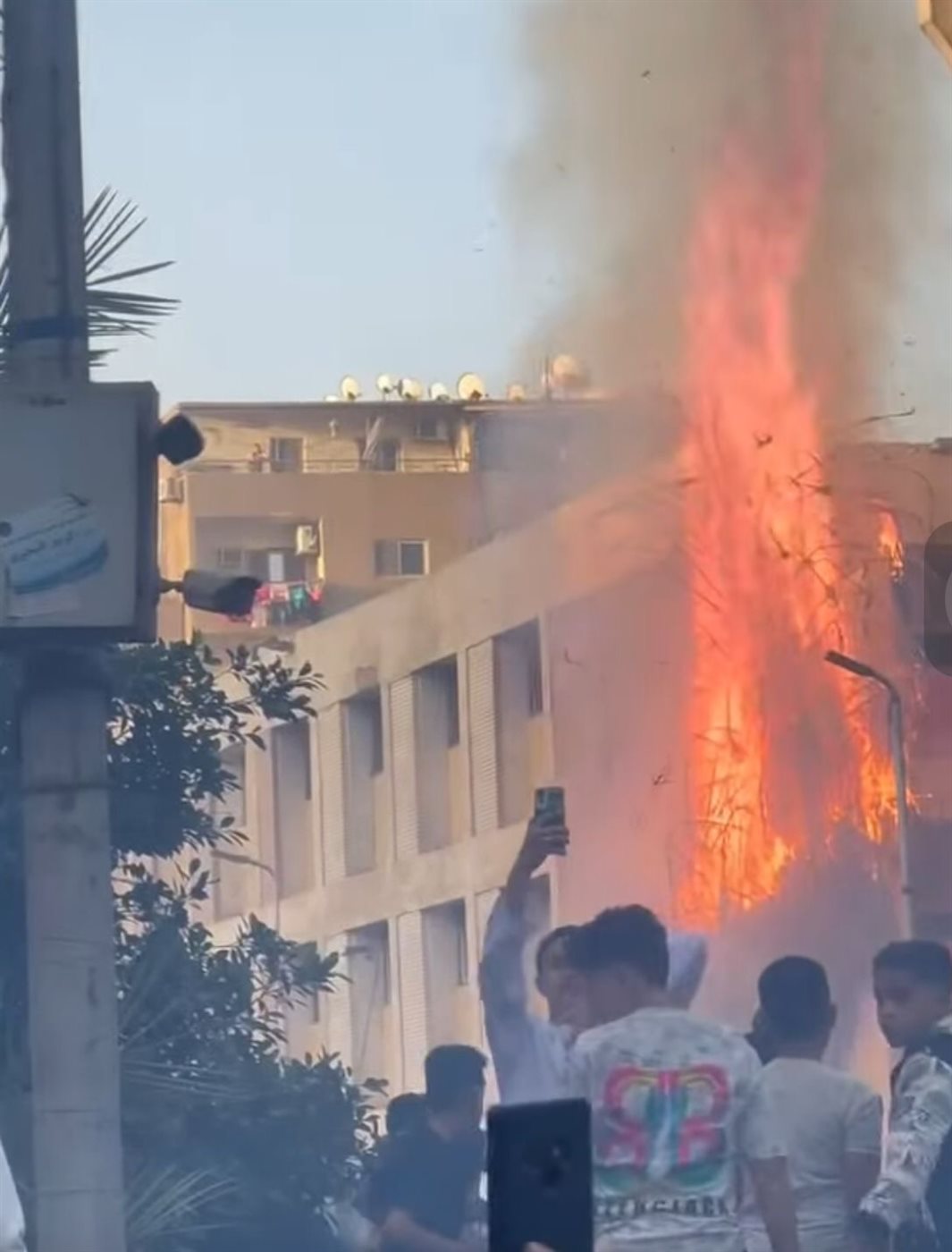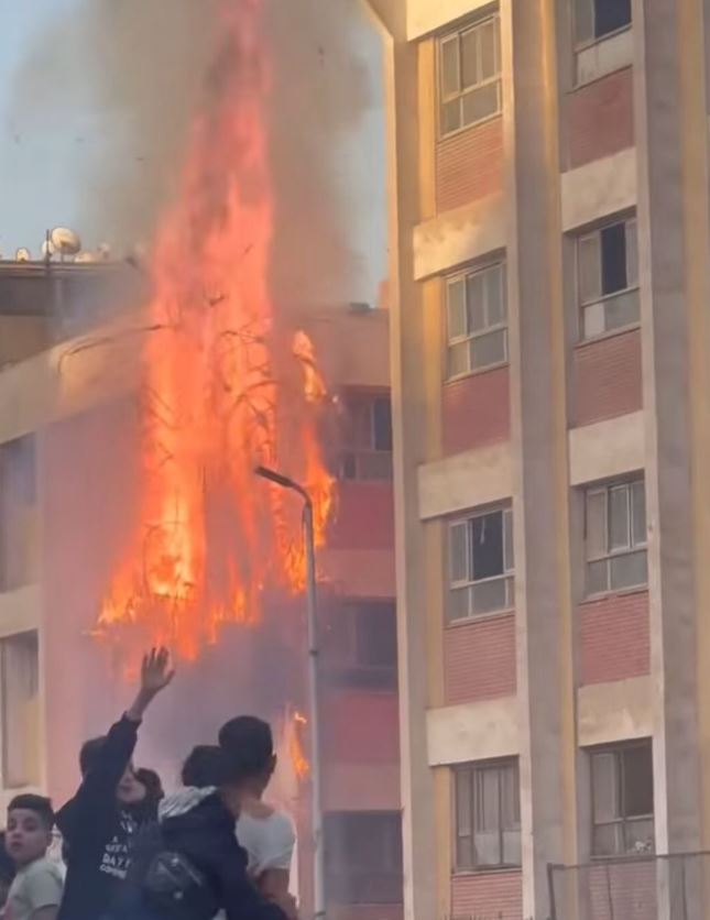 بسبب الصواريخ، حريق بمجمع مدارس عمر بن الخطاب في عين شمس بعد صلاة العيد (فيديو)
