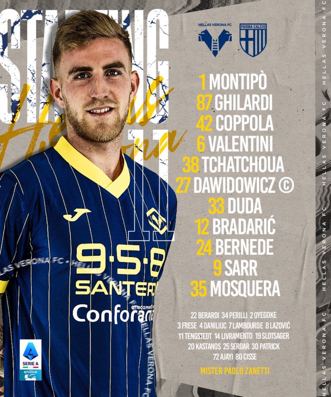 تشكيل هيلاس فيرونا ضد بارما في الدوري الإيطالي