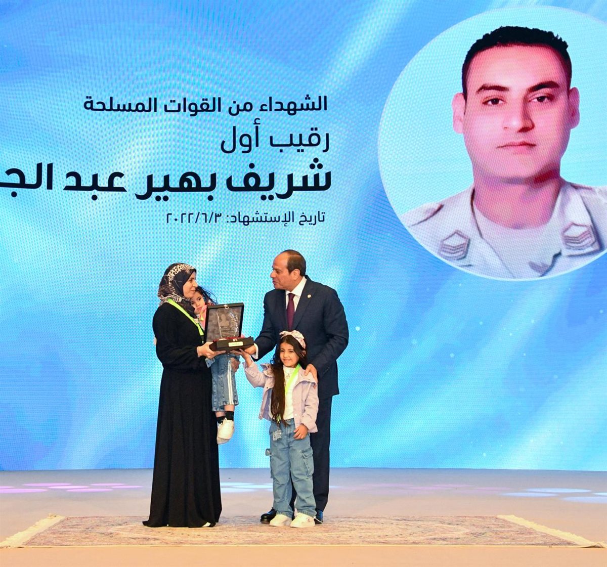 - يحرص الرئيس عبد الفتاح السيسي على تكريم الشهداء في العديد من المناسبات ويوجه بتقديم وتعزيز الخدمات لأسرهم