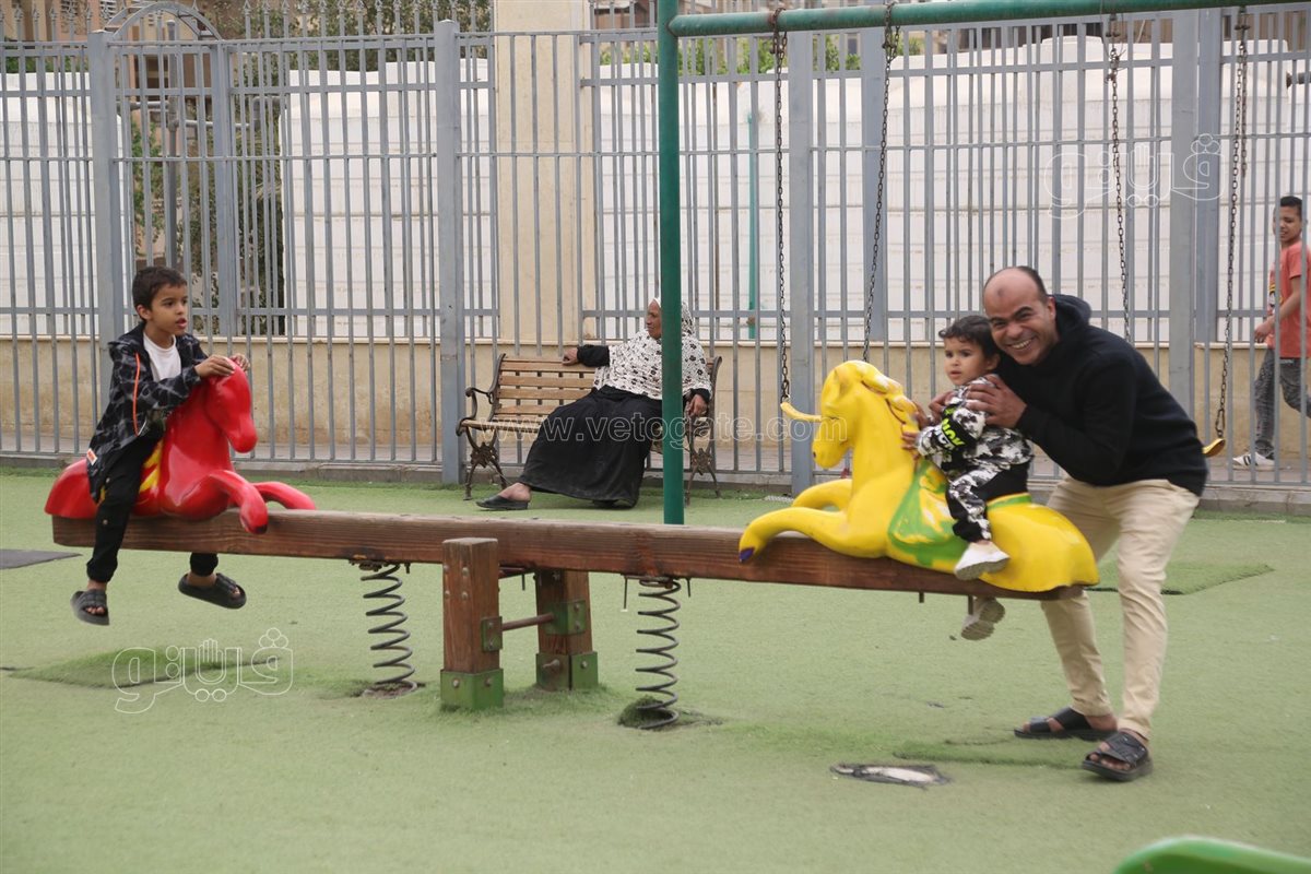 ورصدت عدسة "فيتو" لعب الأطفال وسط مراقبة آبائهم لهم من بعيد أو الانضمام لهم في الألعاب المصممة للجميع، لتعلو ضحكات الصغار بينما يلتقط الأهالي الصور لهم كتذكار على الأوقات المرحة التي قضوها معًا في ثاني أيام عيد الفطر بالحديقة الدولية.